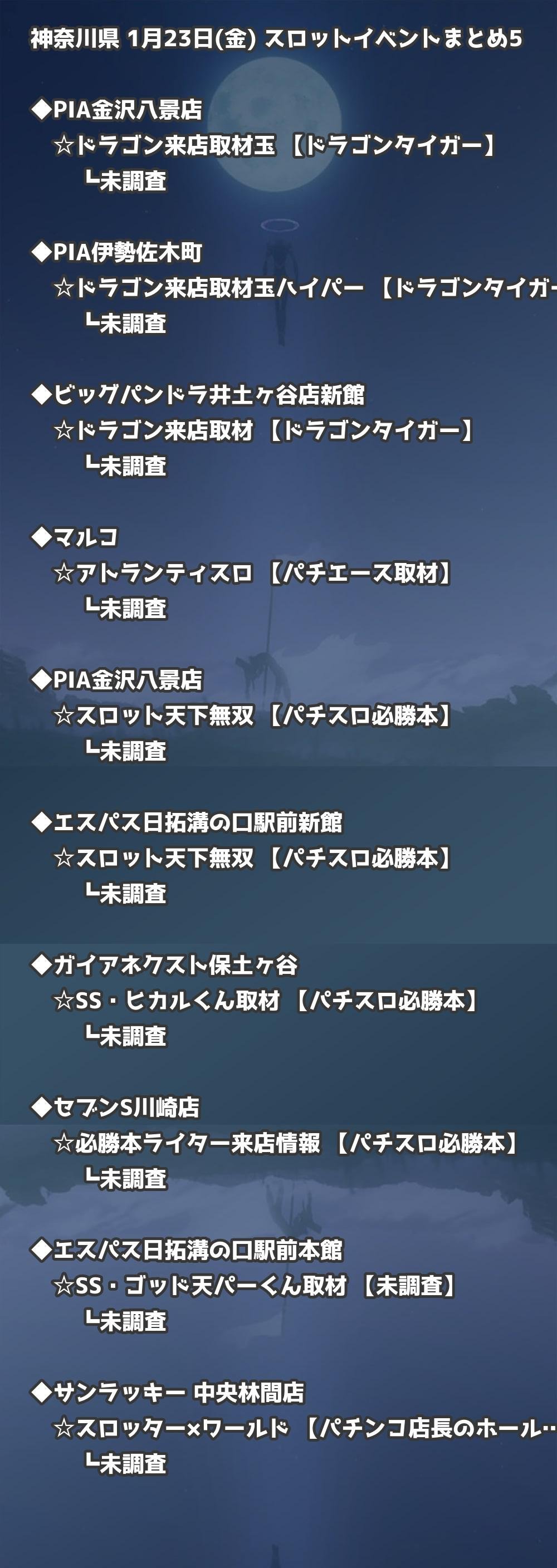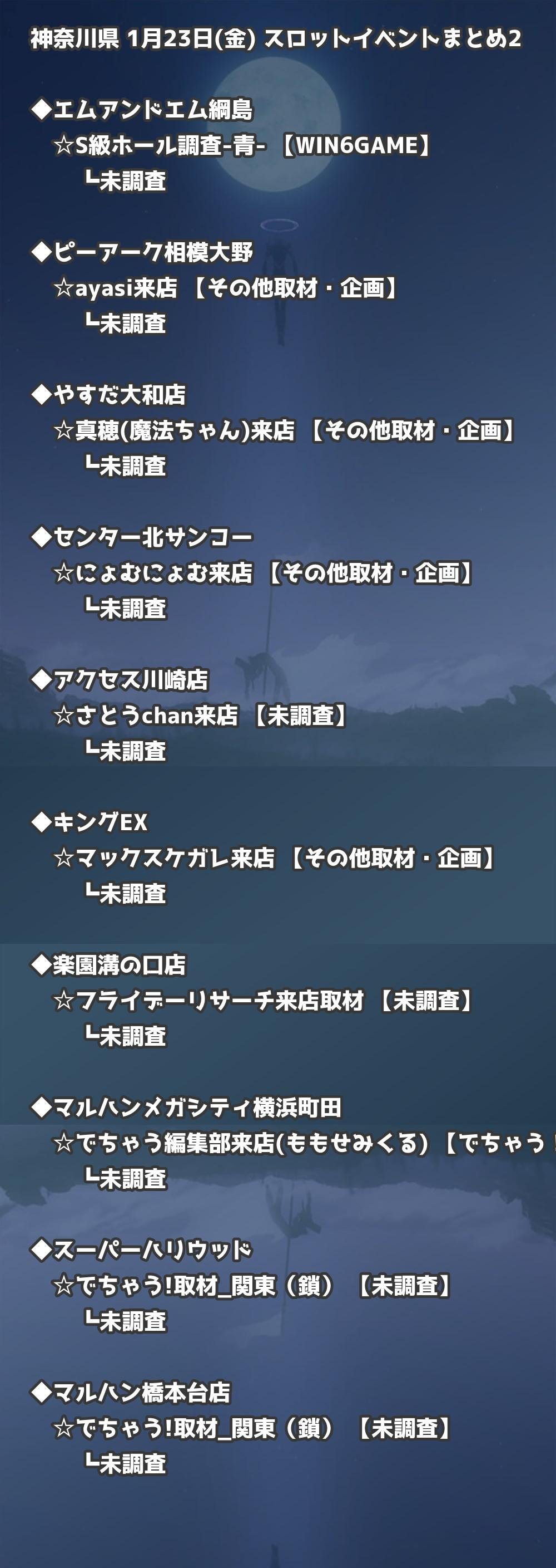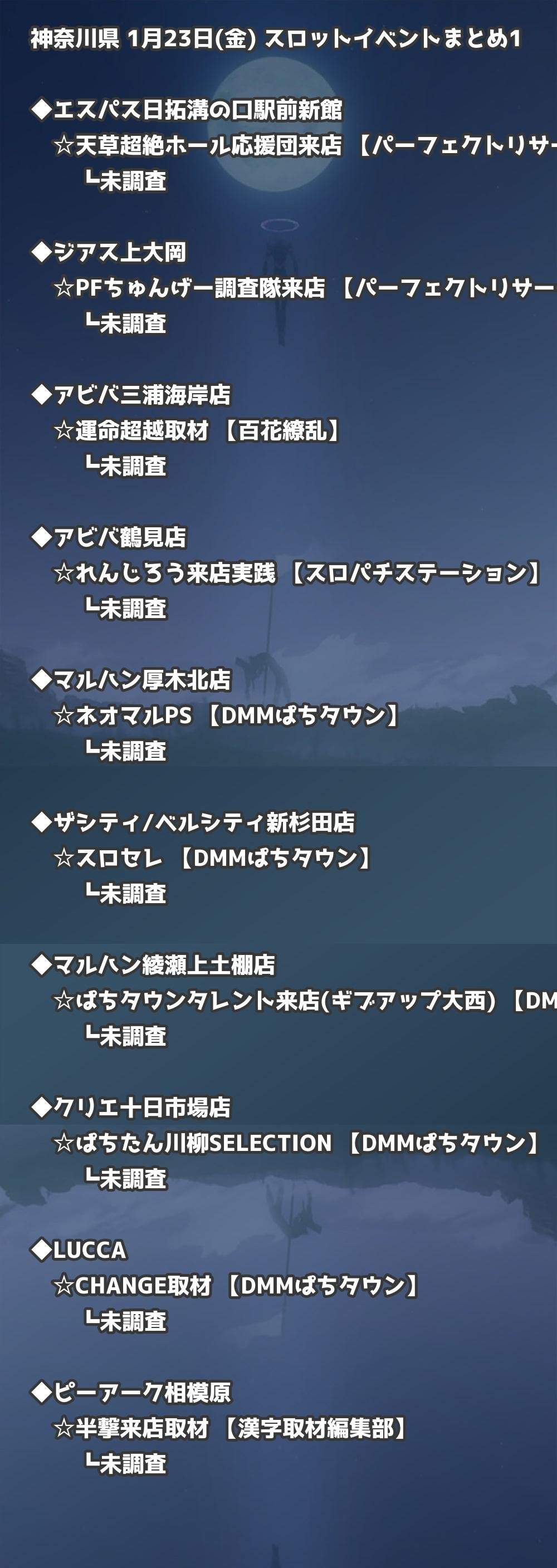 📊 神奈川県 1月23日(金) 勝てるパチンコ・スロット取材店舗一覧|おすすめ順