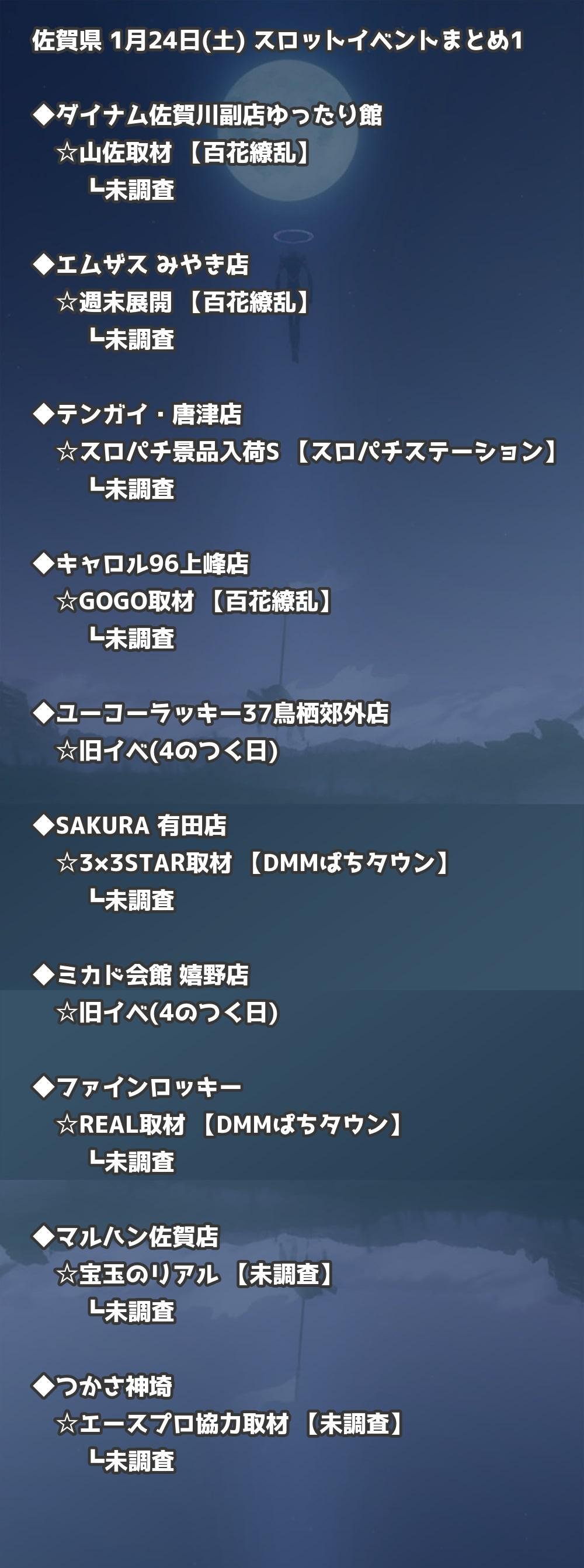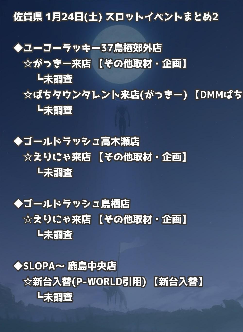 📊 佐賀県 1月24日(土) 勝てるパチンコ・スロット取材店舗一覧|おすすめ順