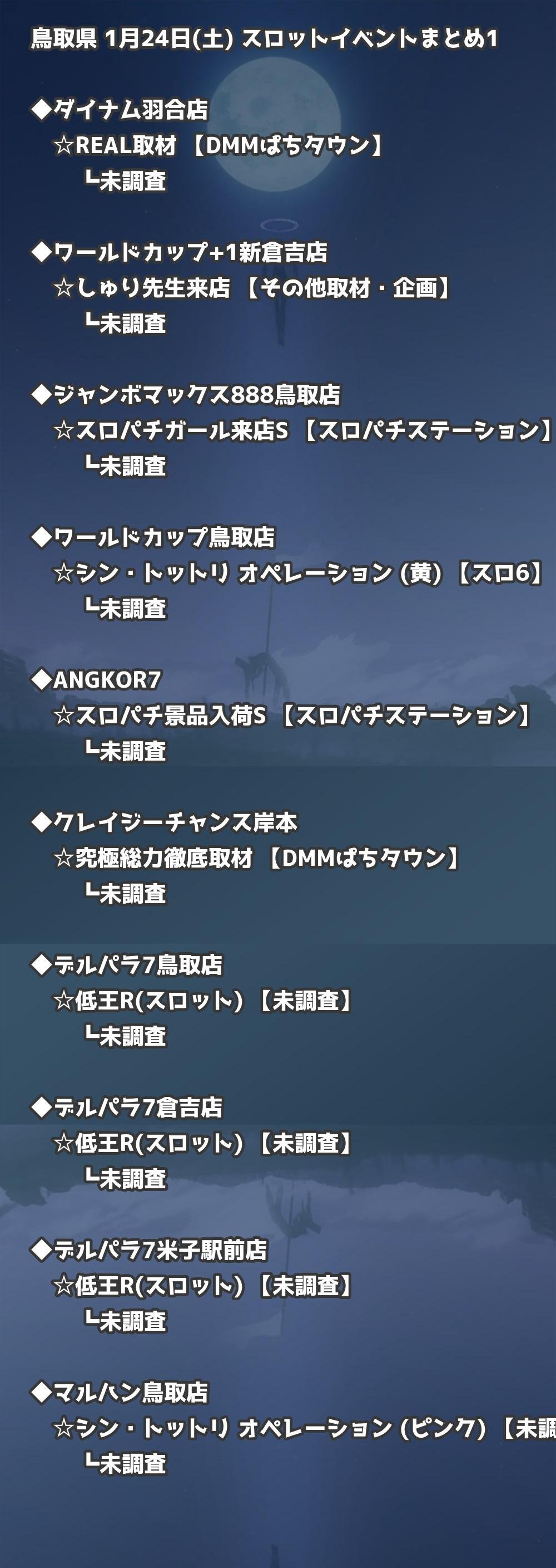 📊 鳥取県 1月24日(土) 勝てるパチンコ・スロット取材店舗一覧|おすすめ順