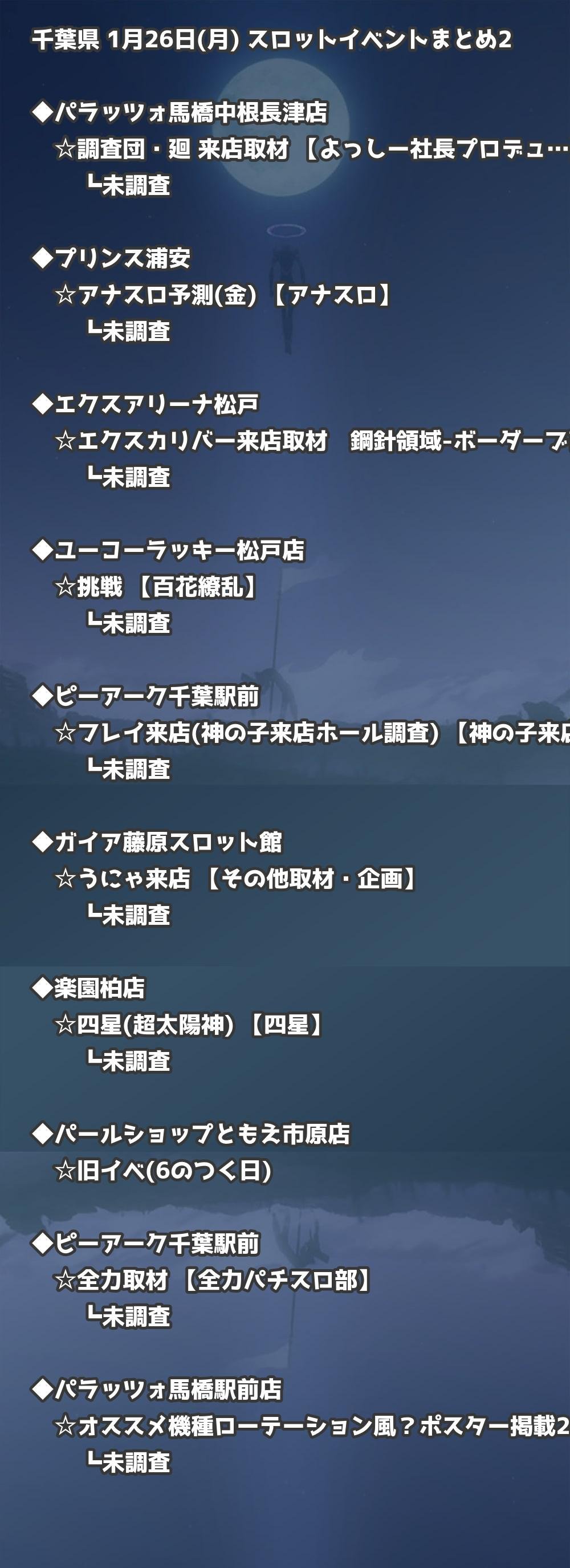 ※店舗結果掲載済 【千葉】1月26日(月) 今日のスロット・パチンコ激熱イベント取材まとめ