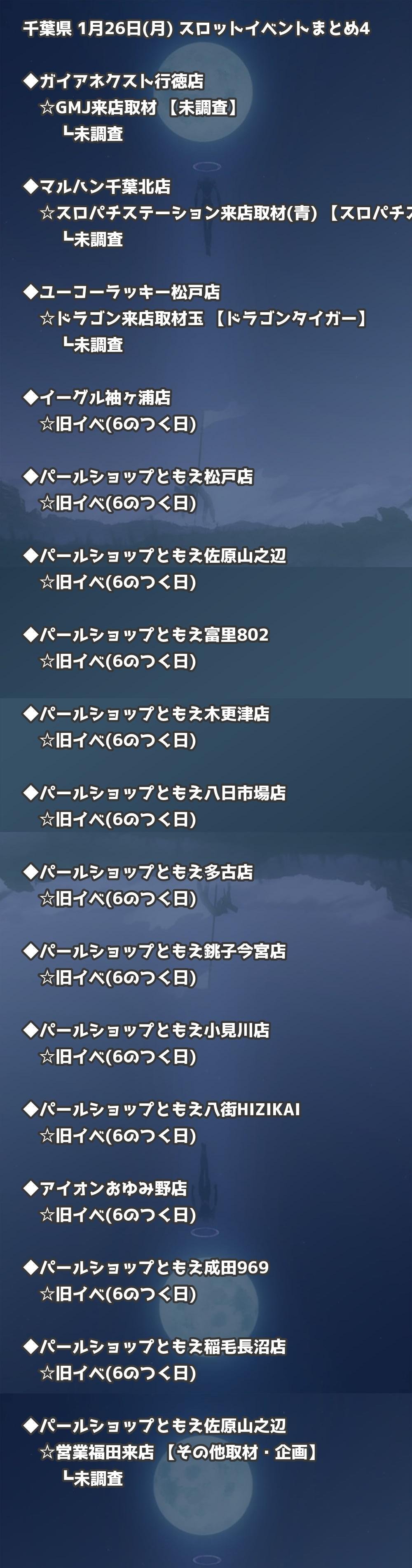 【千葉県】1月26日(月) パチンコホールイベント取材まとめ記事です。