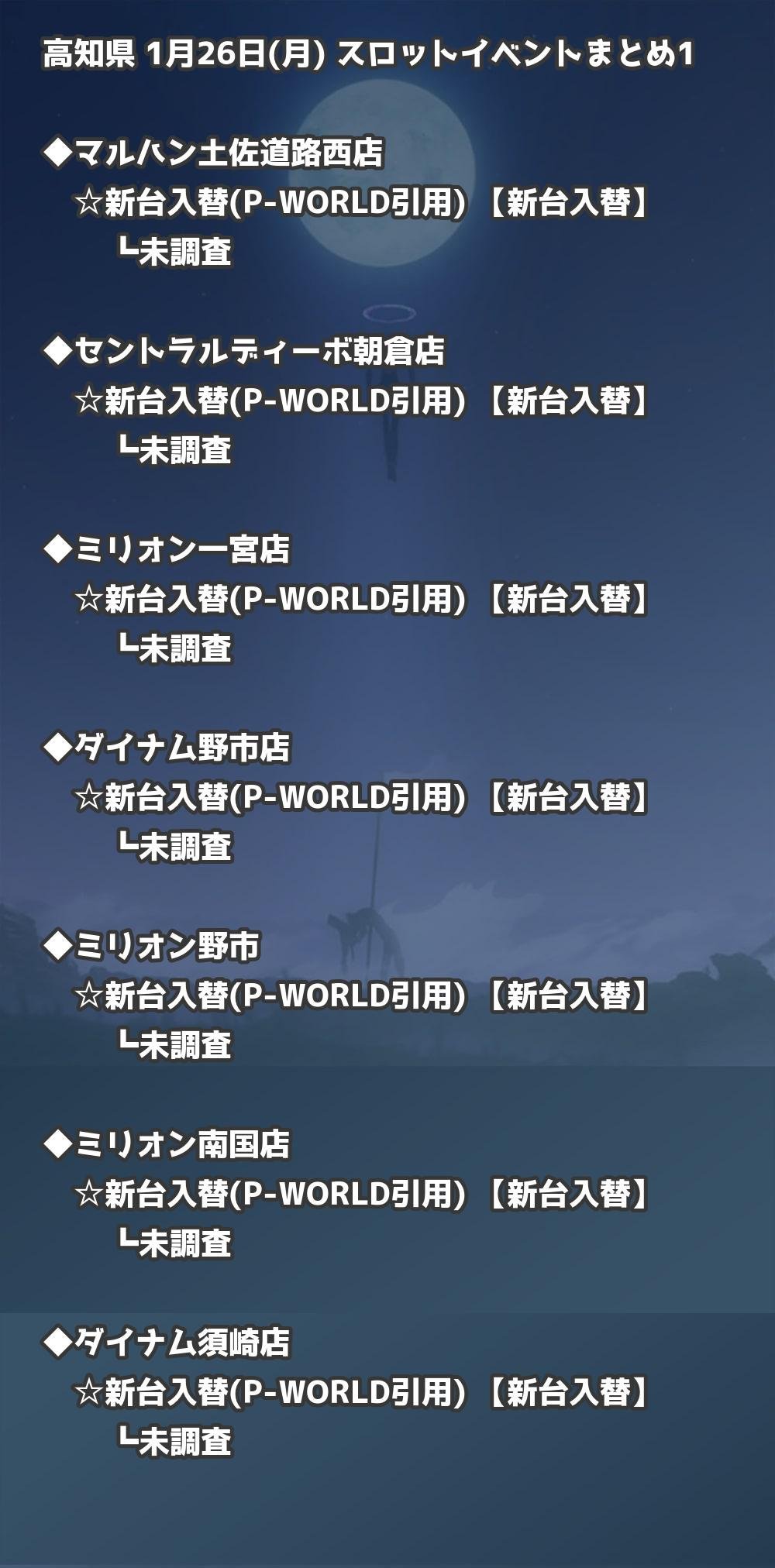 📊 高知県 1月26日(月) 勝てるパチンコ・スロット取材店舗一覧|おすすめ順