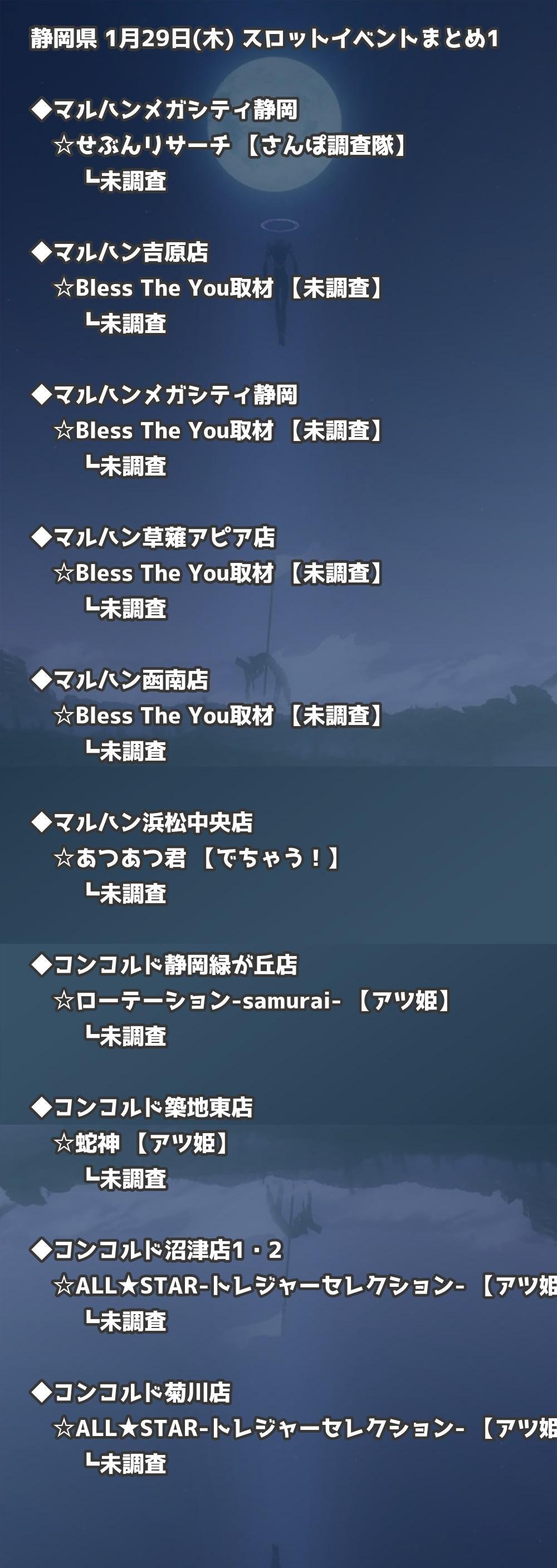 📊 静岡県 1月29日(木) 勝てるパチンコ・スロット取材店舗一覧|おすすめ順