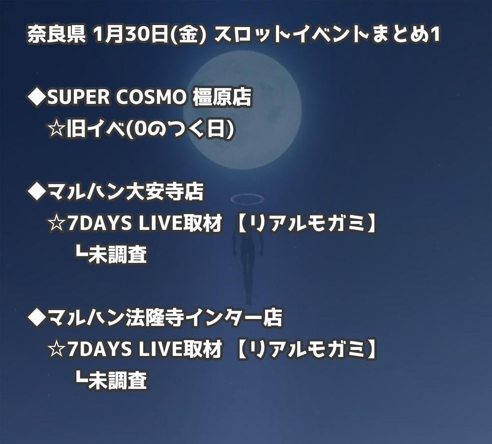 【奈良県】1月30日(金) パチンコホールイベント取材まとめ記事です。