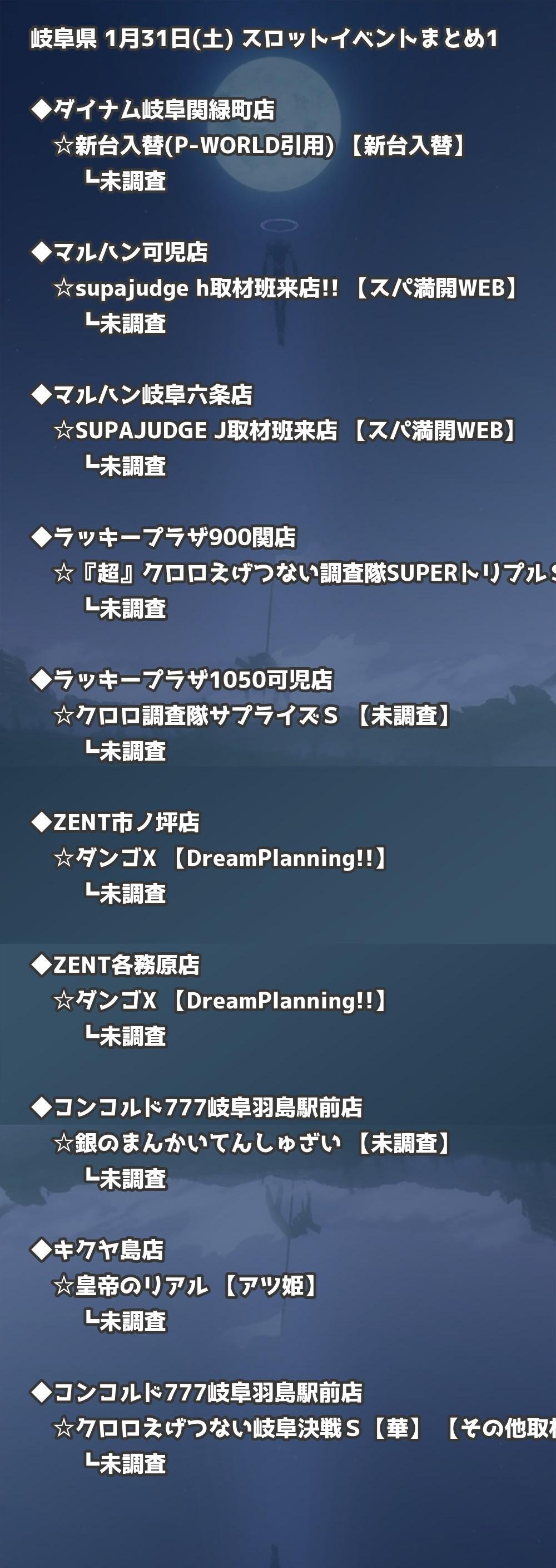 📊 岐阜県 1月31日(土) 勝てるパチンコ・スロット取材店舗一覧|おすすめ順