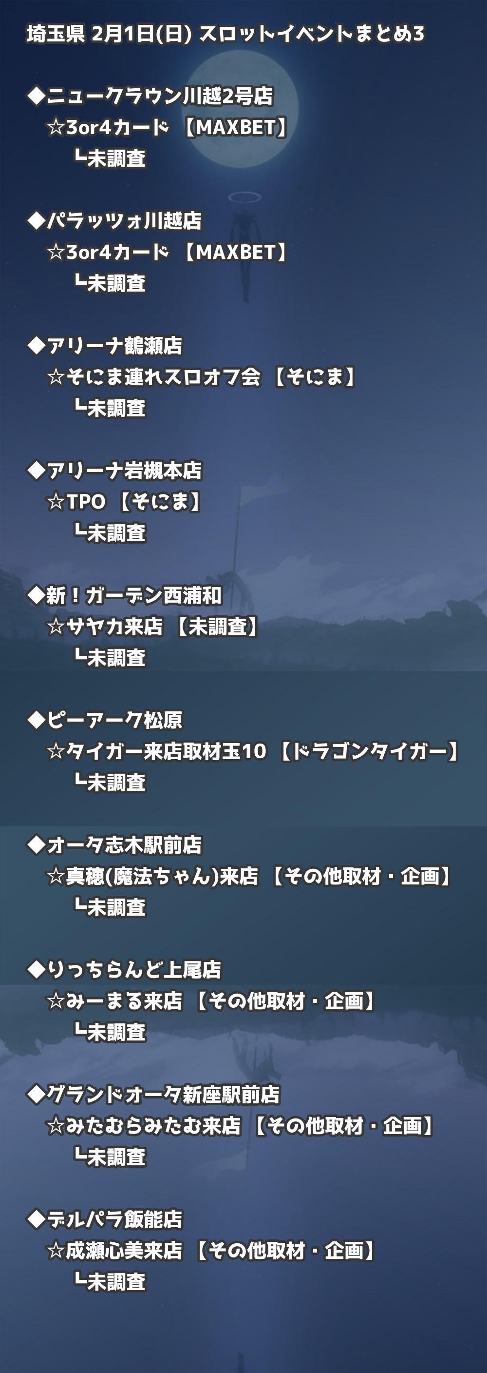 ※店舗結果掲載済 【埼玉】2月1日(日) 今日のスロット・パチンコ激熱イベント取材まとめ