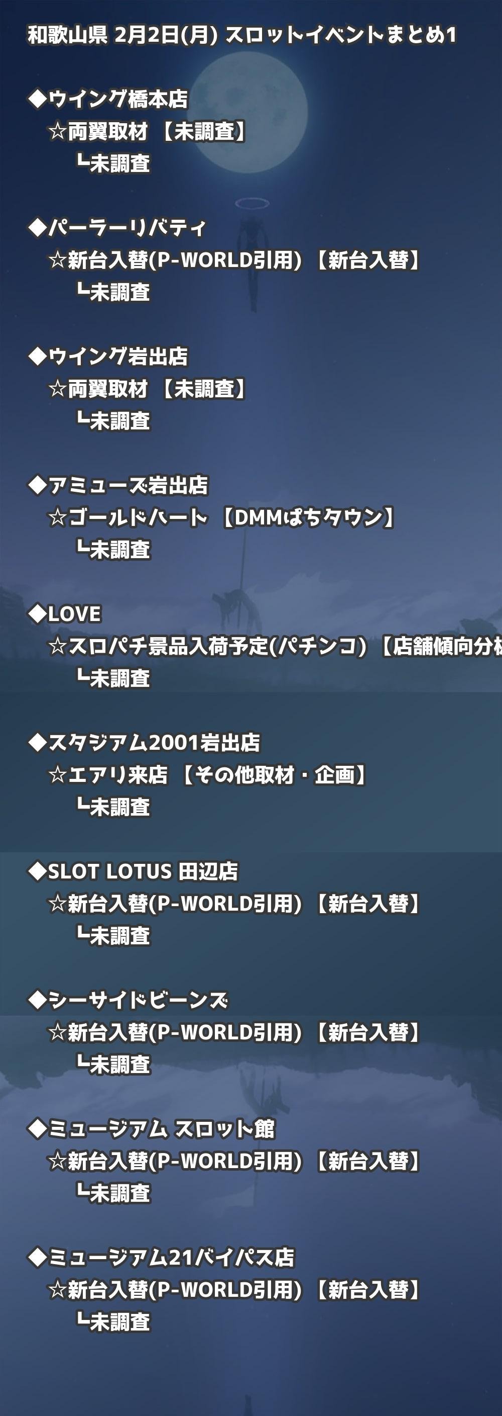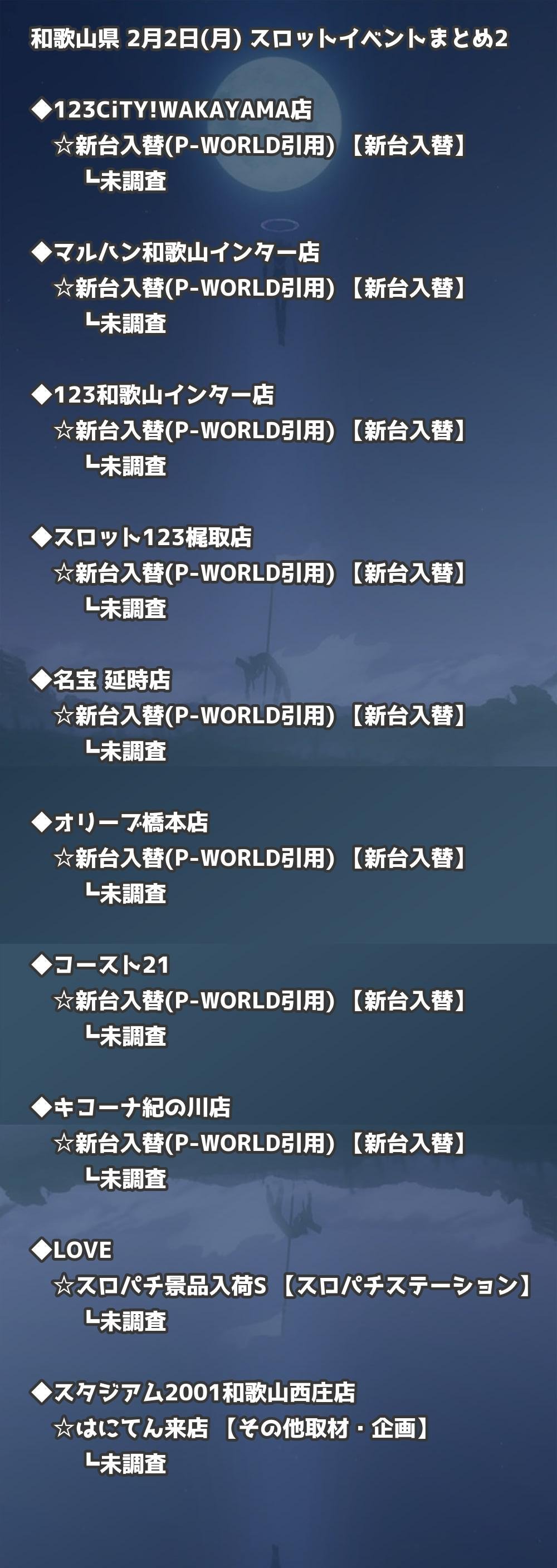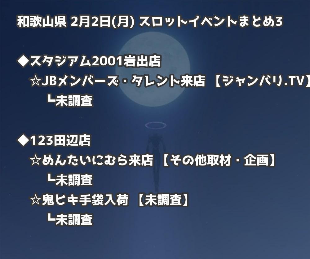 【和歌山県】2月2日(月) パチンコホールイベント取材まとめ記事です。