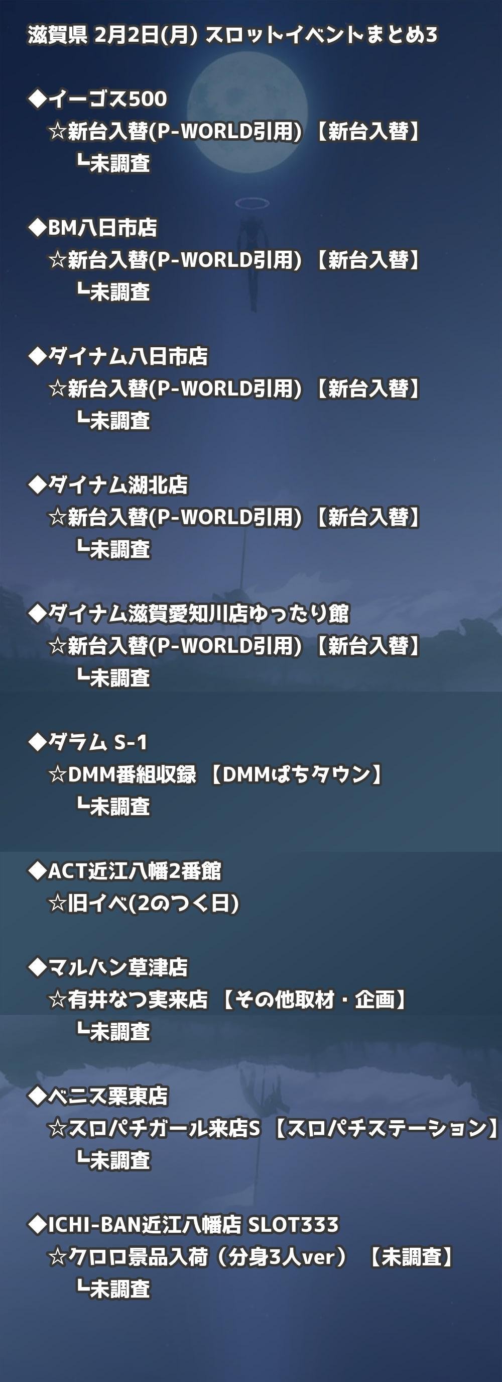 【滋賀県】2月2日(月) パチンコホールイベント取材まとめ記事です。
