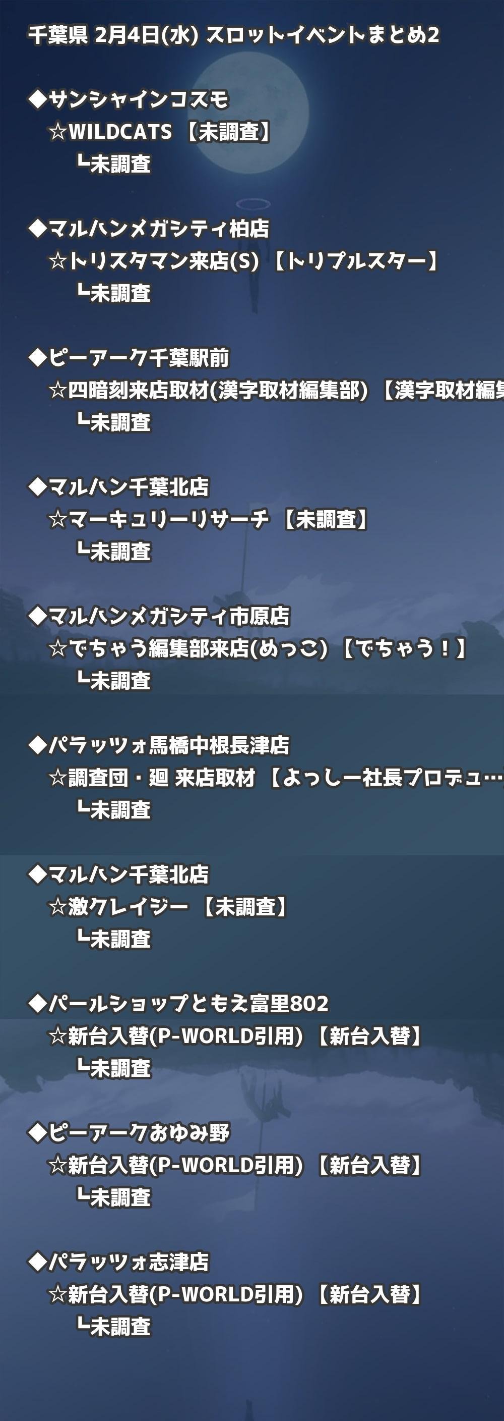 2月4日(水) 千葉県のTOP20の結果を掲載しています。タップで上位機種など詳細が見れます。