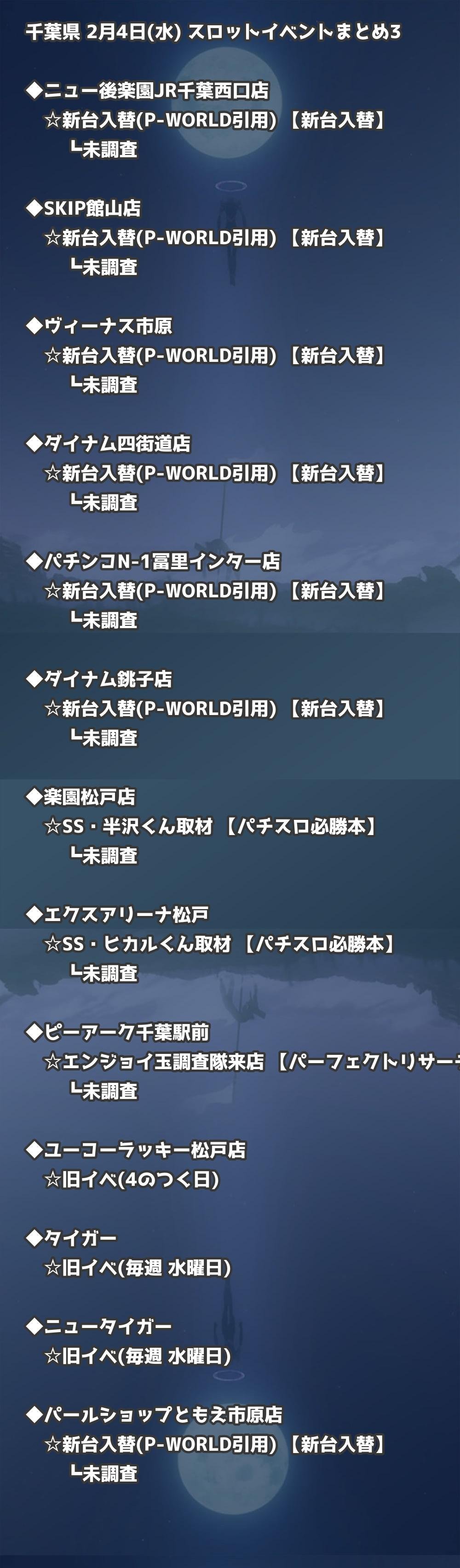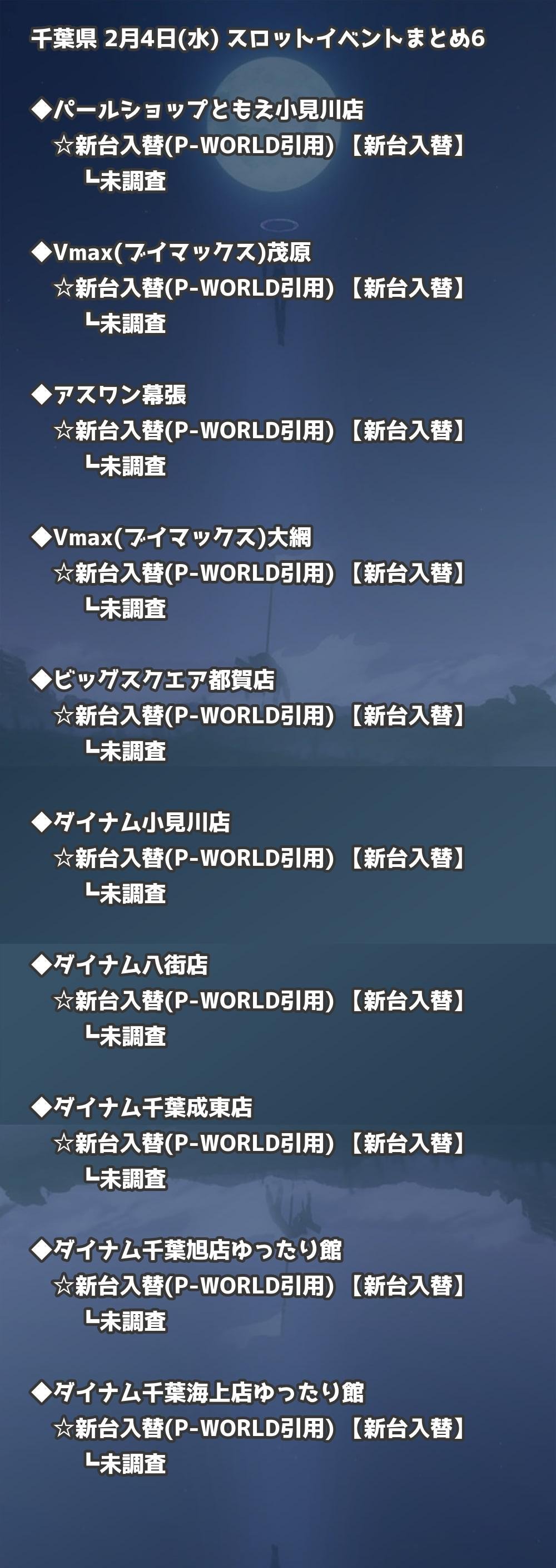 | ダイナム千葉旭店ゆったり館 | 新台入替(P-WORLD引用) | 新台入替 |