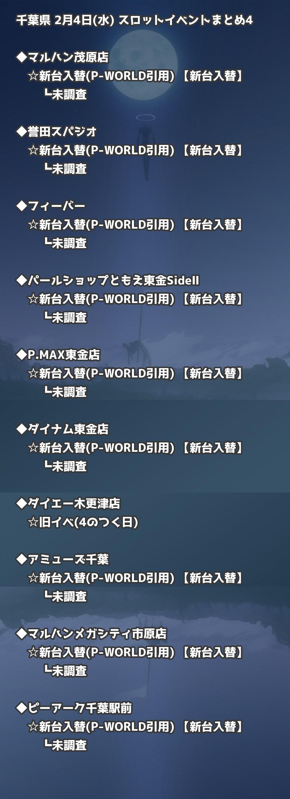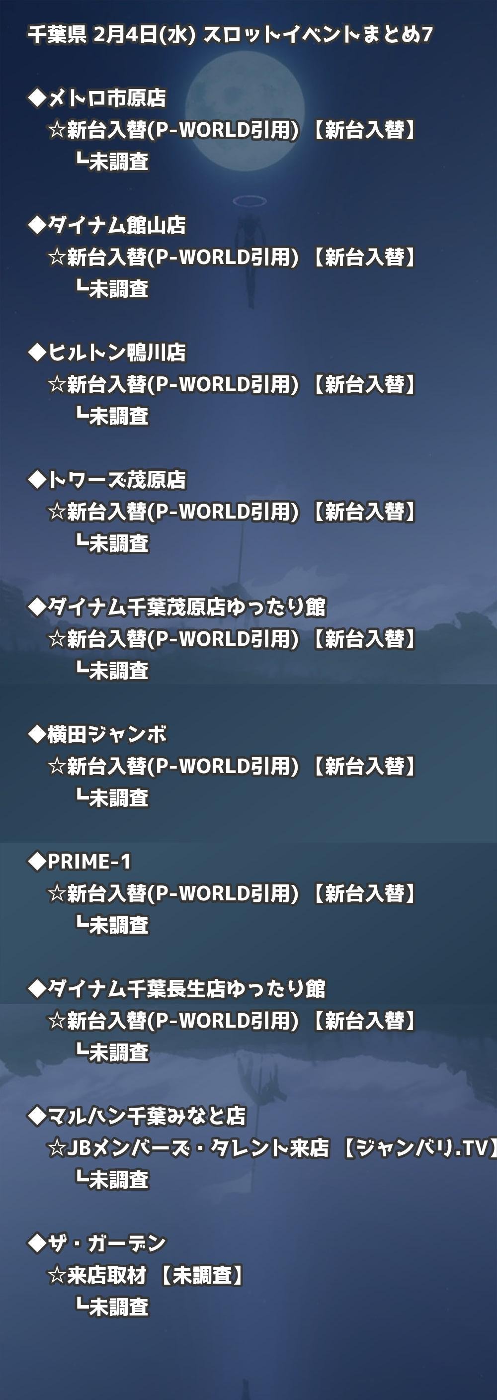 | ダイナム千葉海上店ゆったり館 | 新台入替(P-WORLD引用) | 新台入替 |