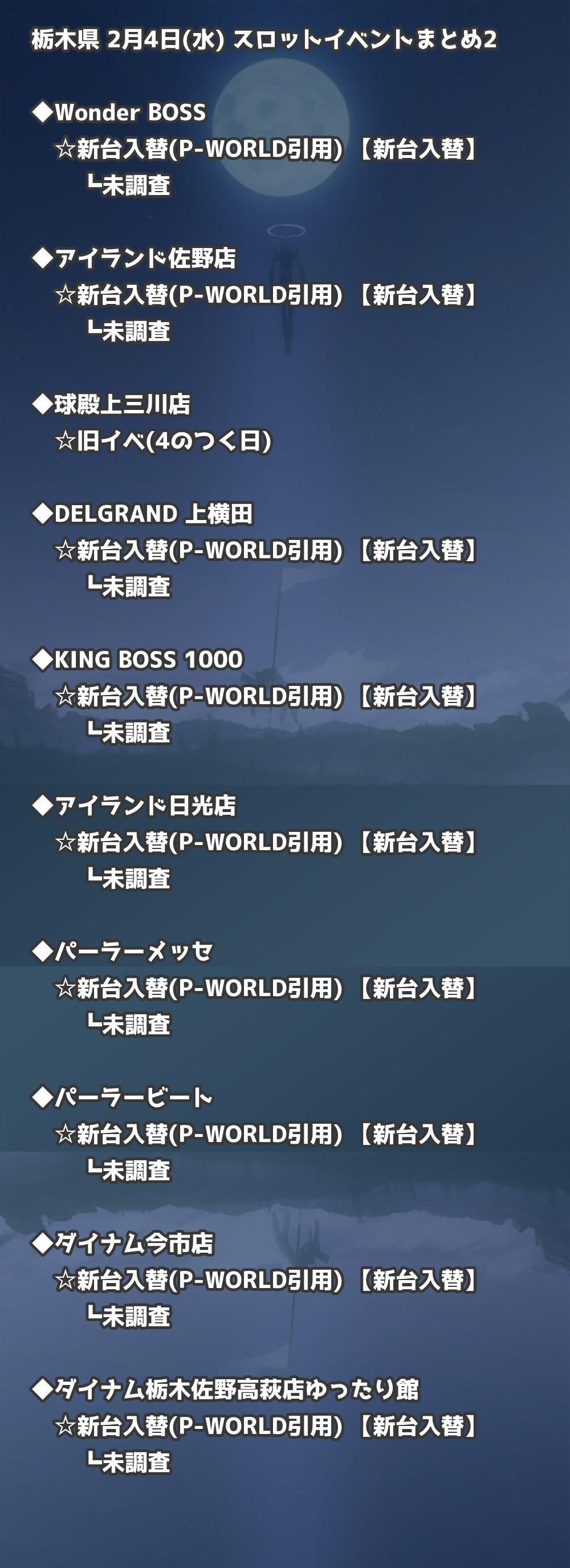 | アイランド日光店 | 新台入替(P-WORLD引用) | 新台入替 |