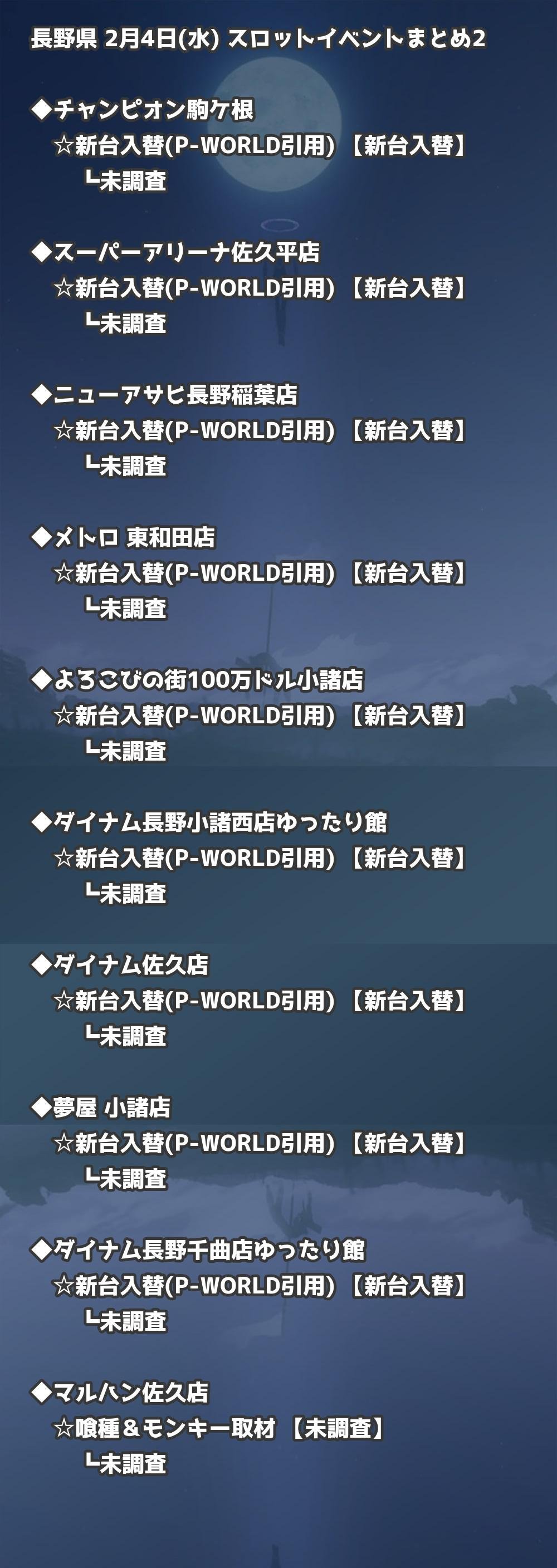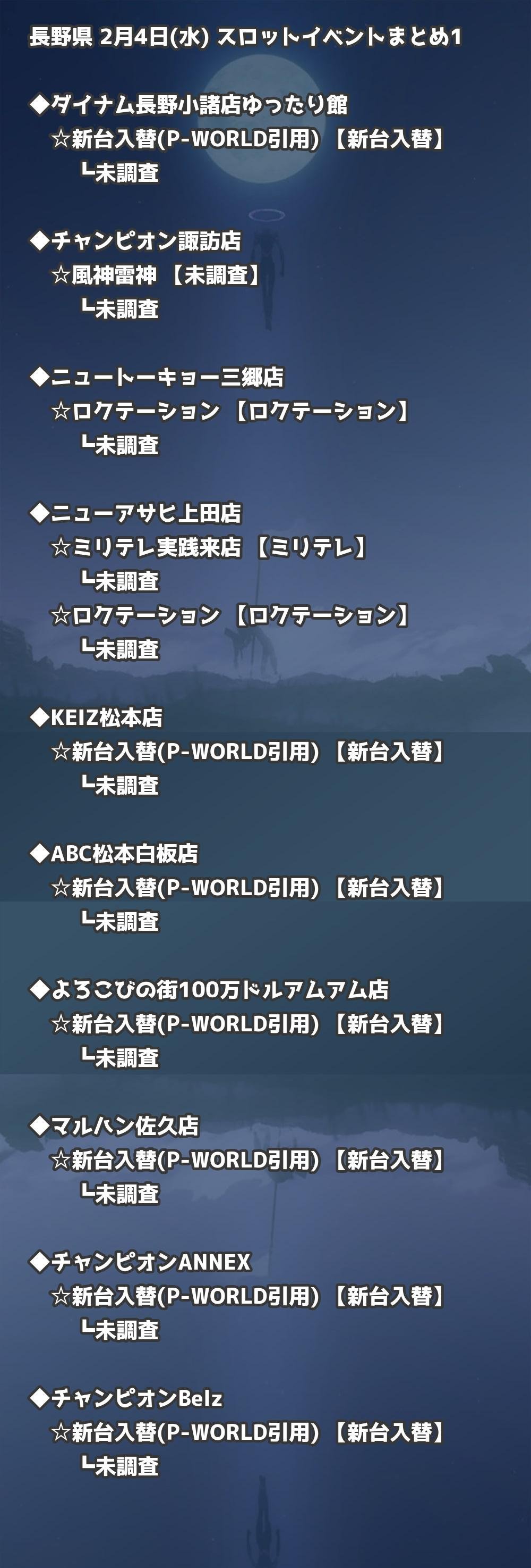 【長野県】2月4日(水) パチンコホールイベント取材まとめ記事です。