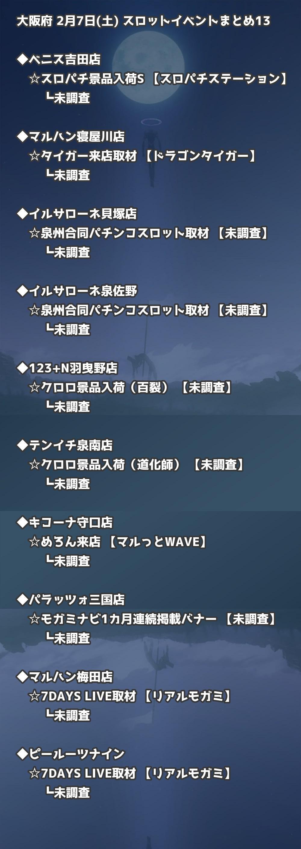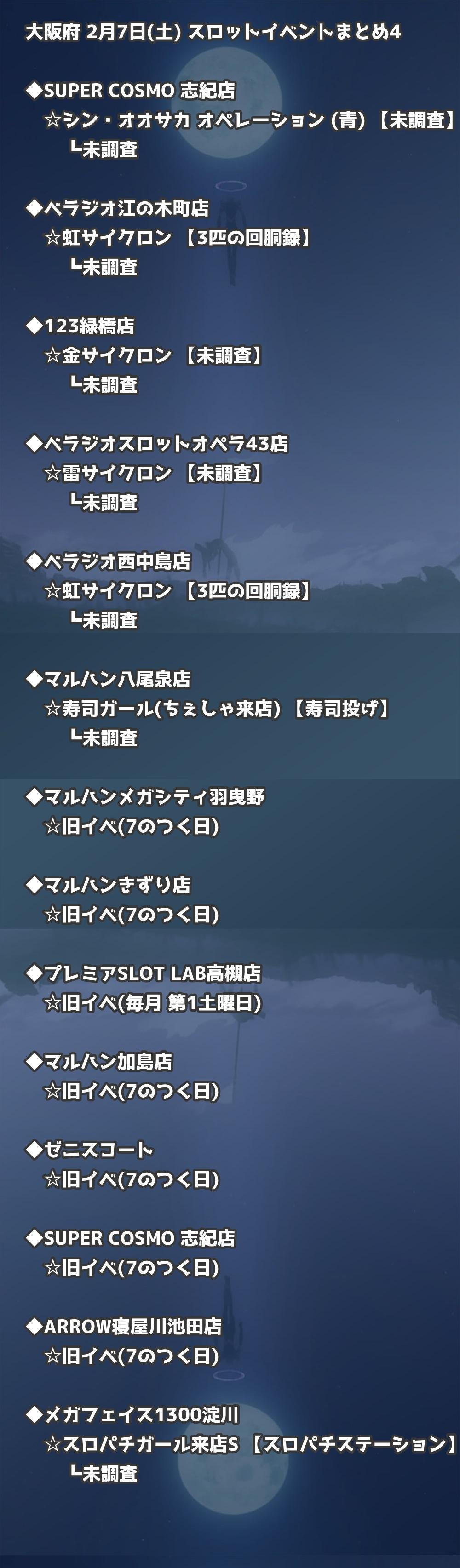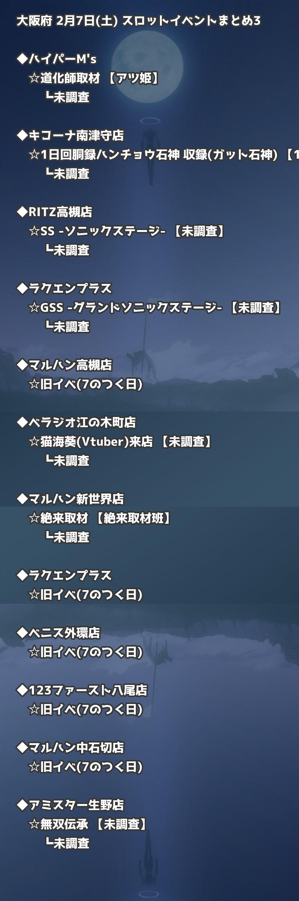 【大阪府】2月7日(土) パチンコホールイベント取材まとめ記事です。