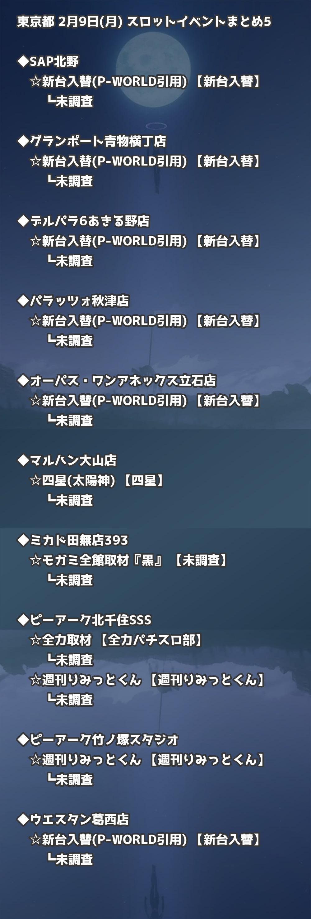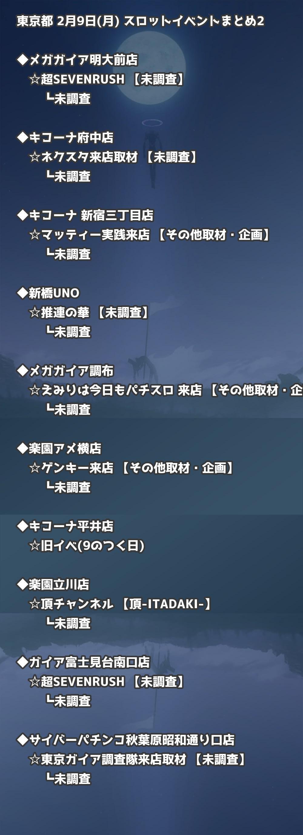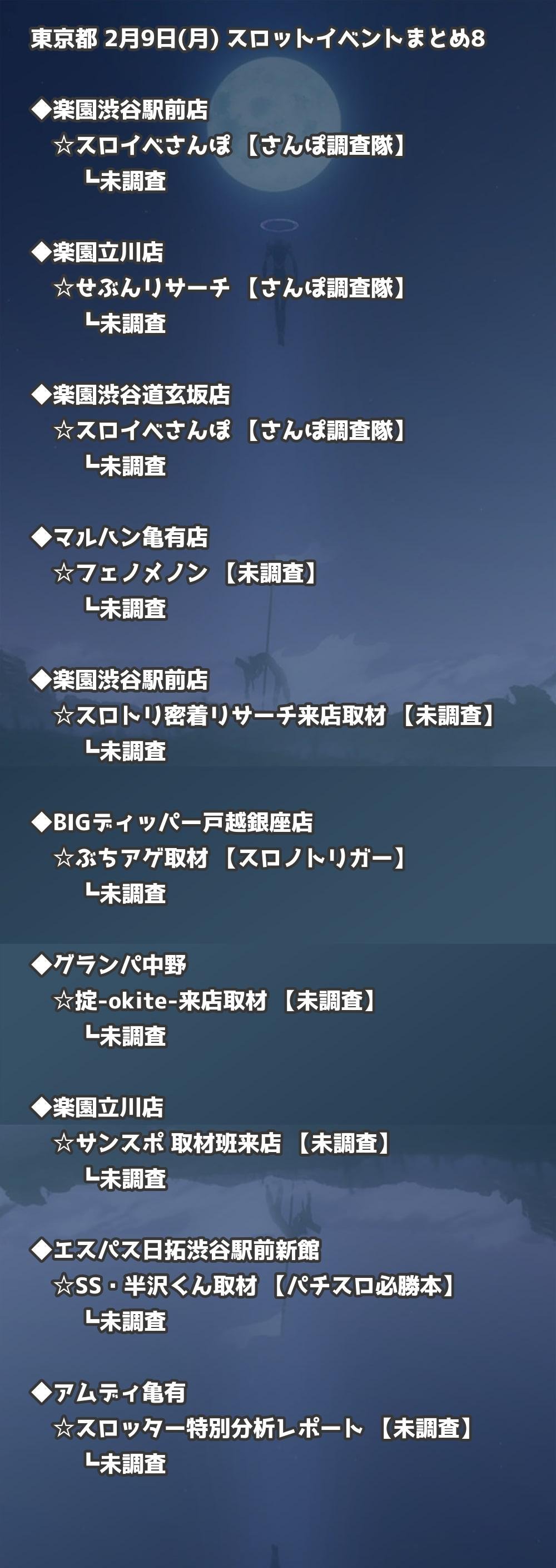 【東京都】2月9日(月) パチンコホールイベント取材まとめ記事です。