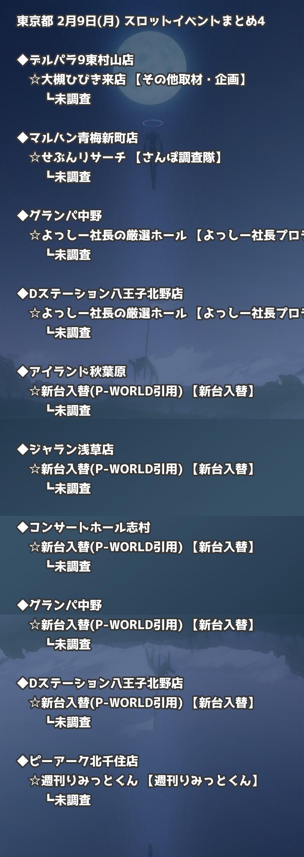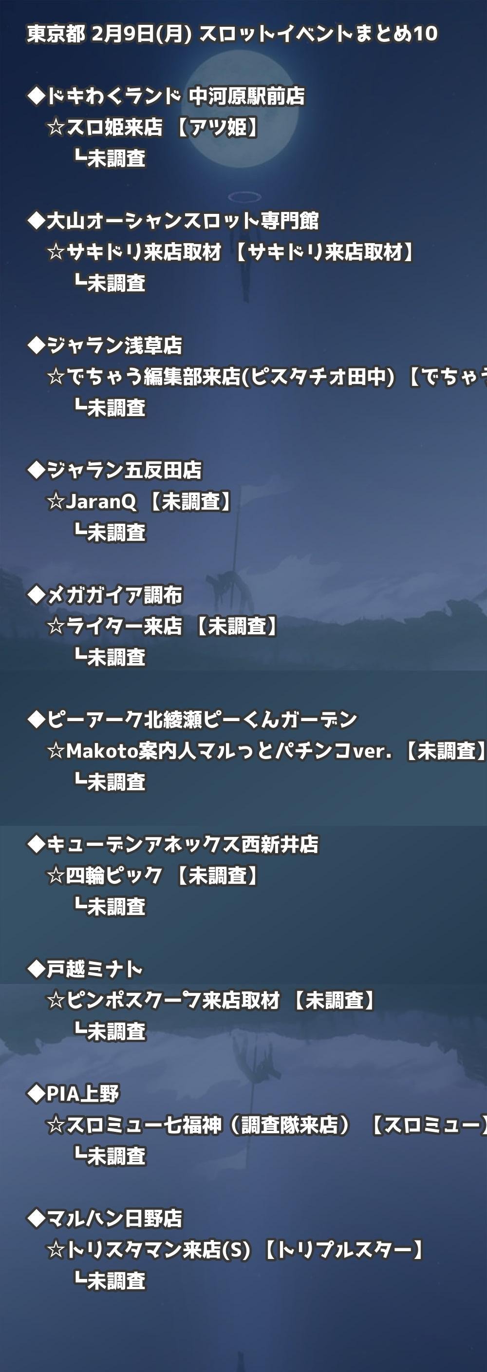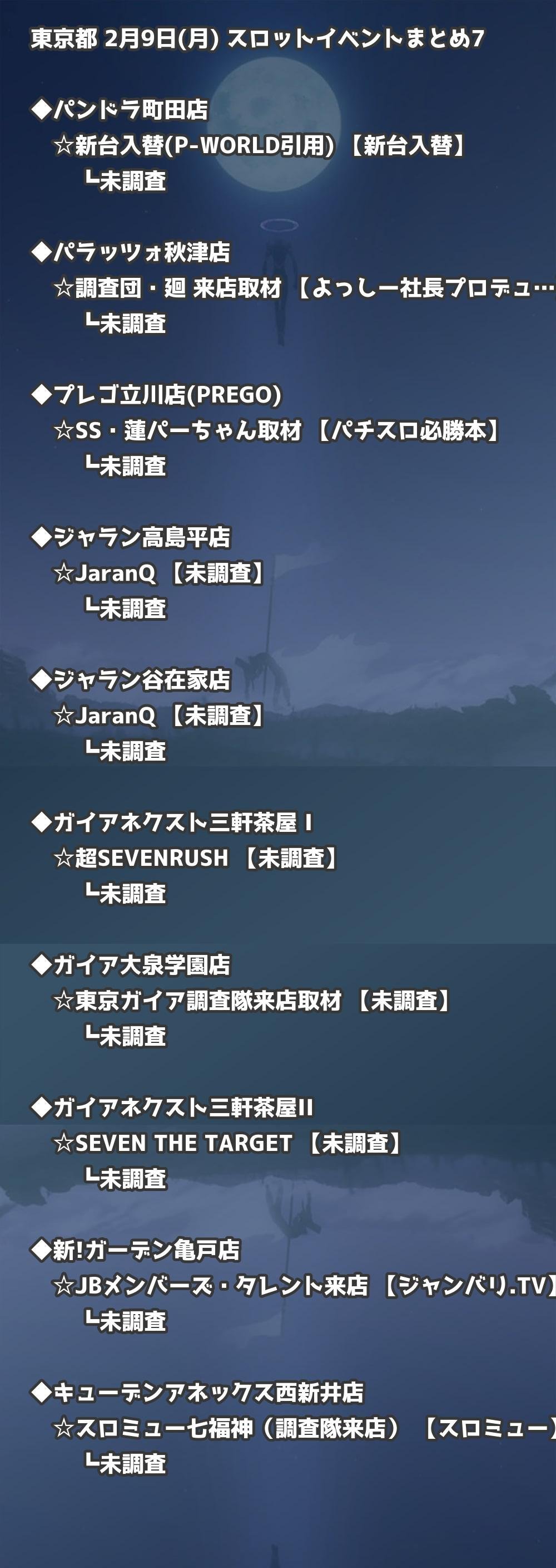 【東京都】2月9日(月) パチンコホールイベント取材まとめ記事です。