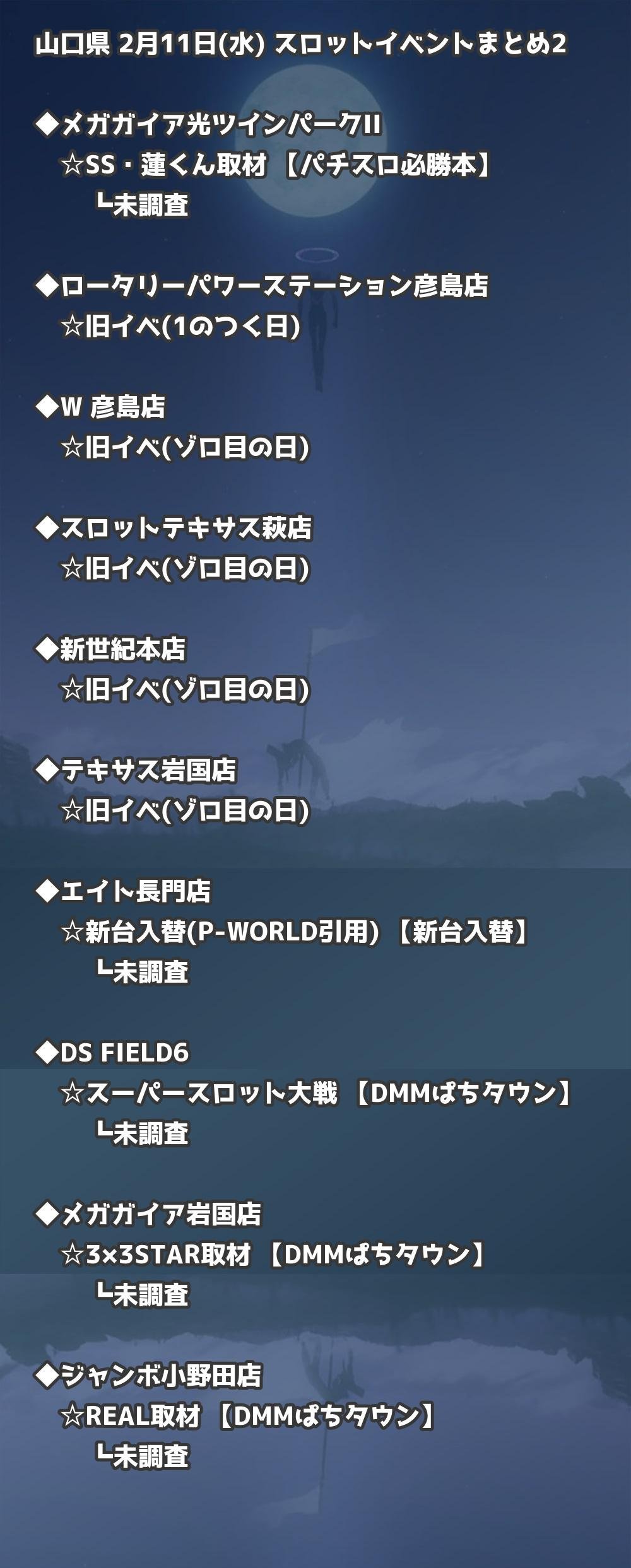📊 山口県 2月11日(水) 勝てるパチンコ・スロット取材店舗一覧|おすすめ順