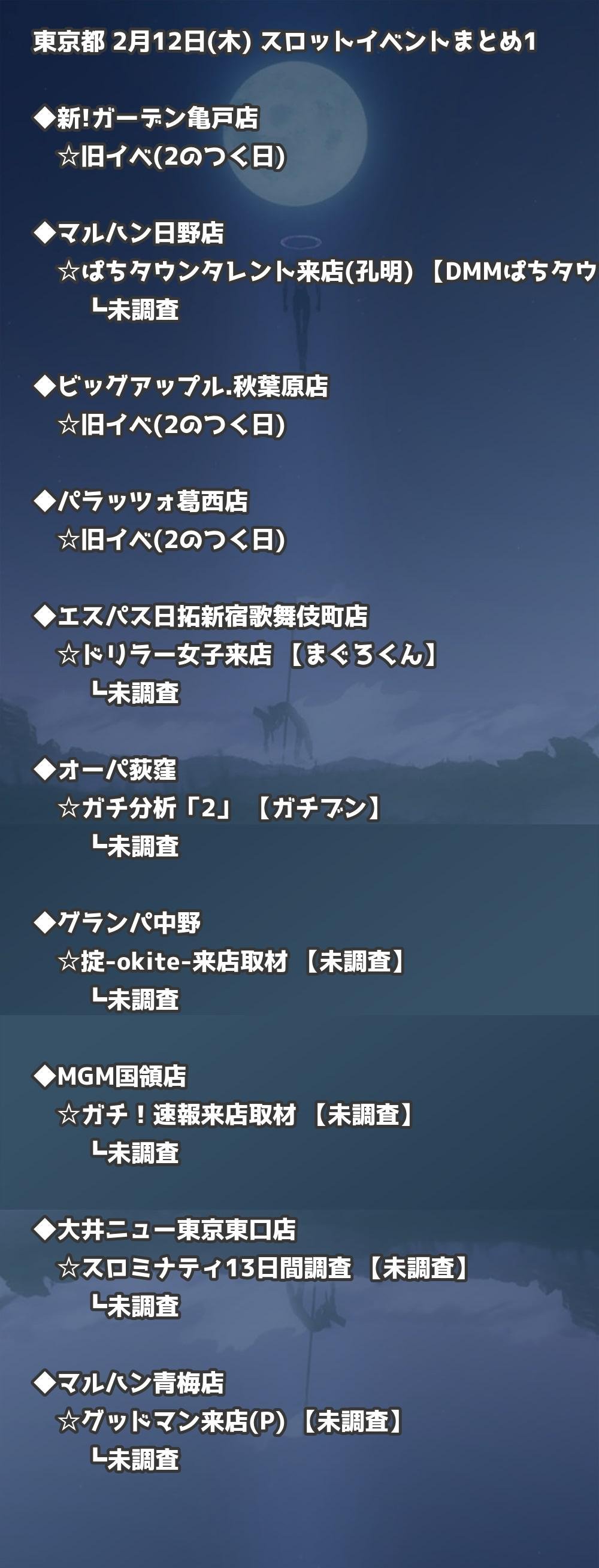 【東京都】2月12日(木) パチンコホールイベント取材まとめ記事です。