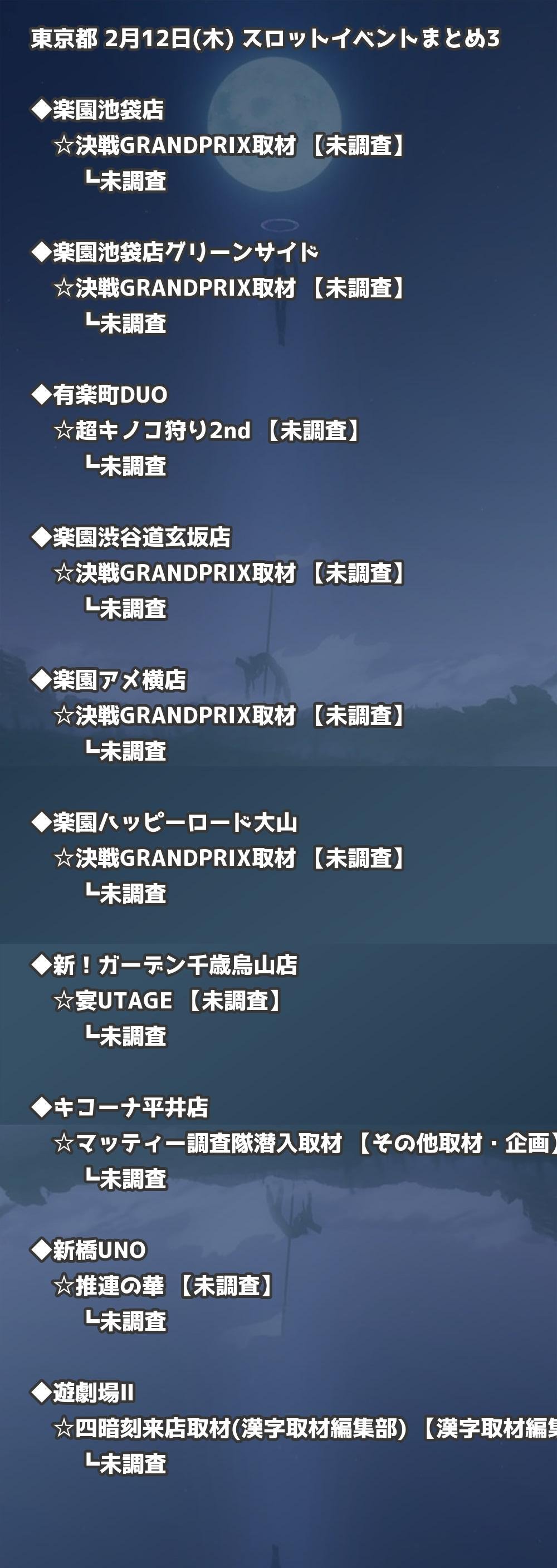 ※店舗結果掲載済 【東京】2月12日(木) 今日のスロット・パチンコ激熱イベント取材まとめ