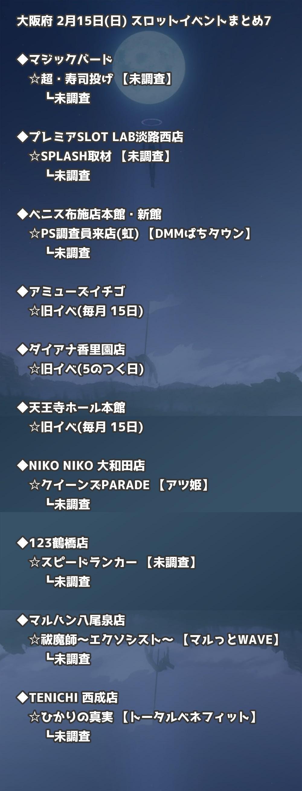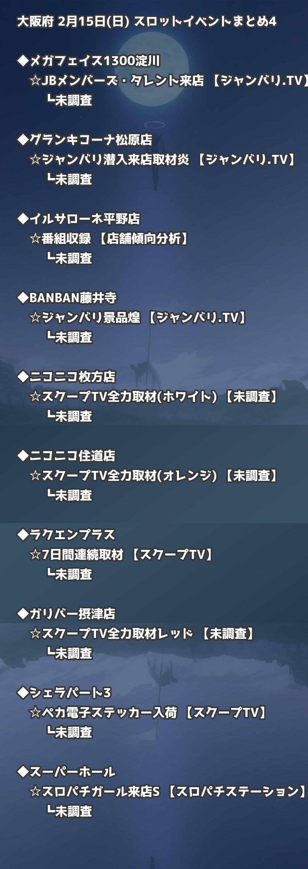 【大阪府】2月15日(日) パチンコホールイベント取材まとめ記事です。