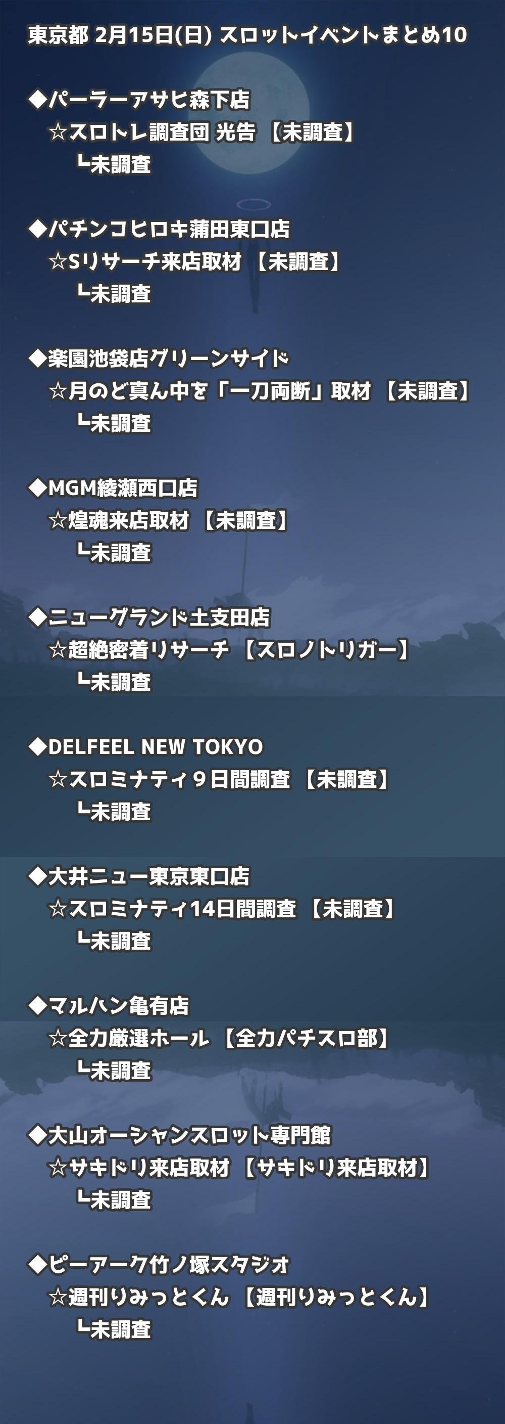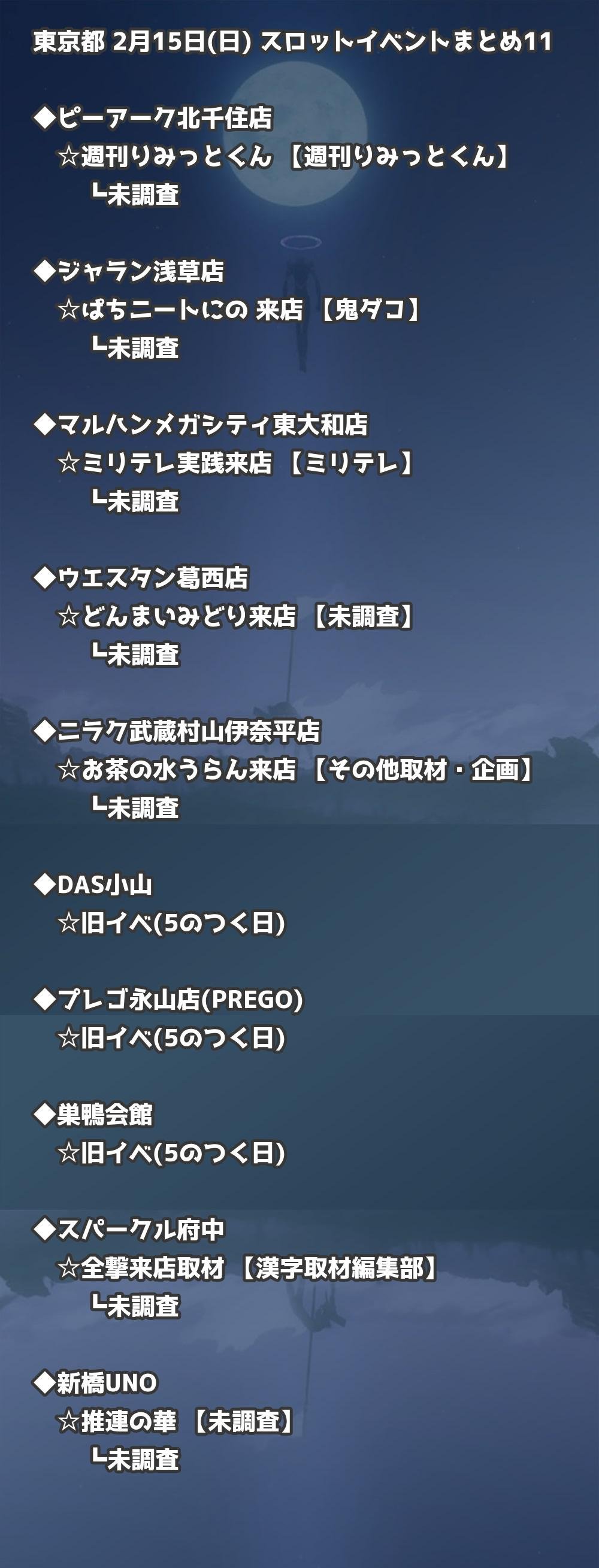 【東京都】2月15日(日) パチンコホールイベント取材まとめ記事です。