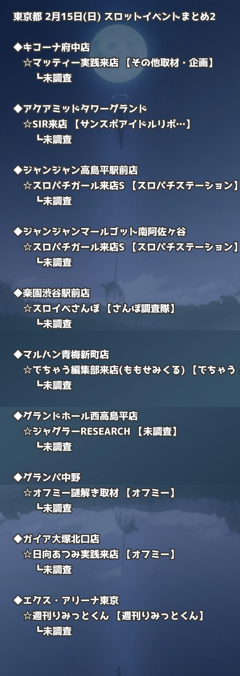 ※店舗結果掲載済 【東京】2月15日(日) 今日のスロット・パチンコ激熱イベント取材まとめ