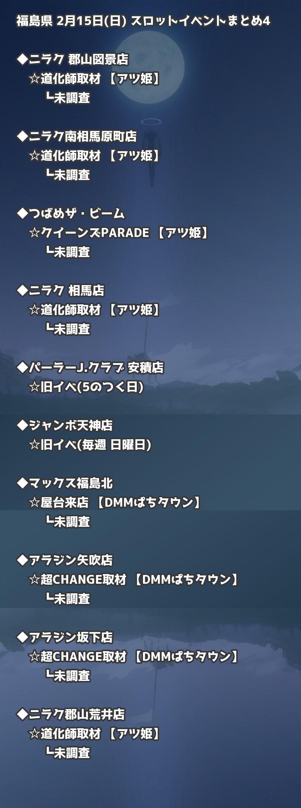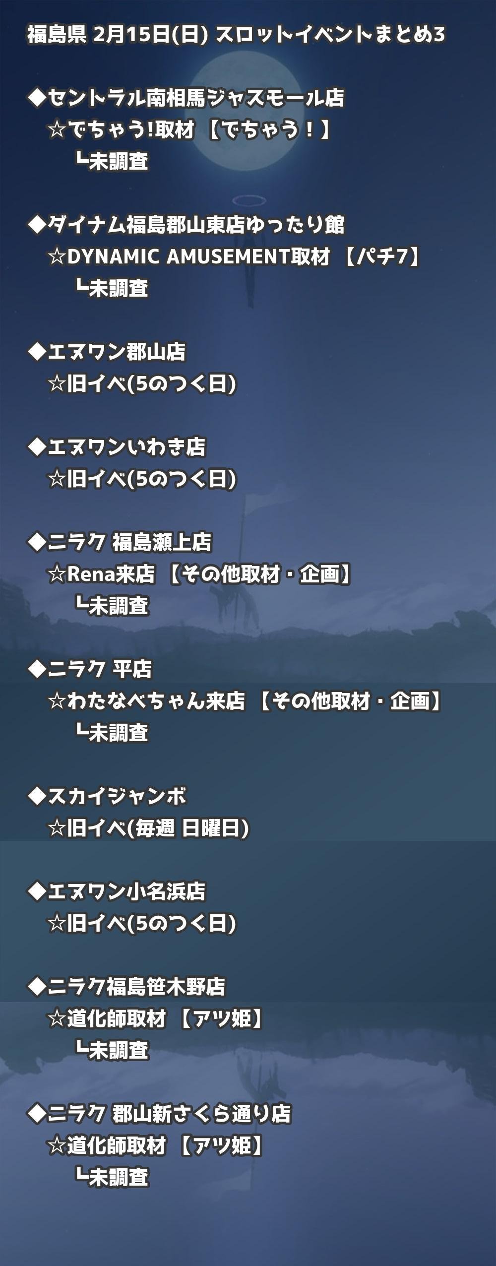 📊 福島県 2月15日(日) 勝てるパチンコ・スロット取材店舗一覧|おすすめ順