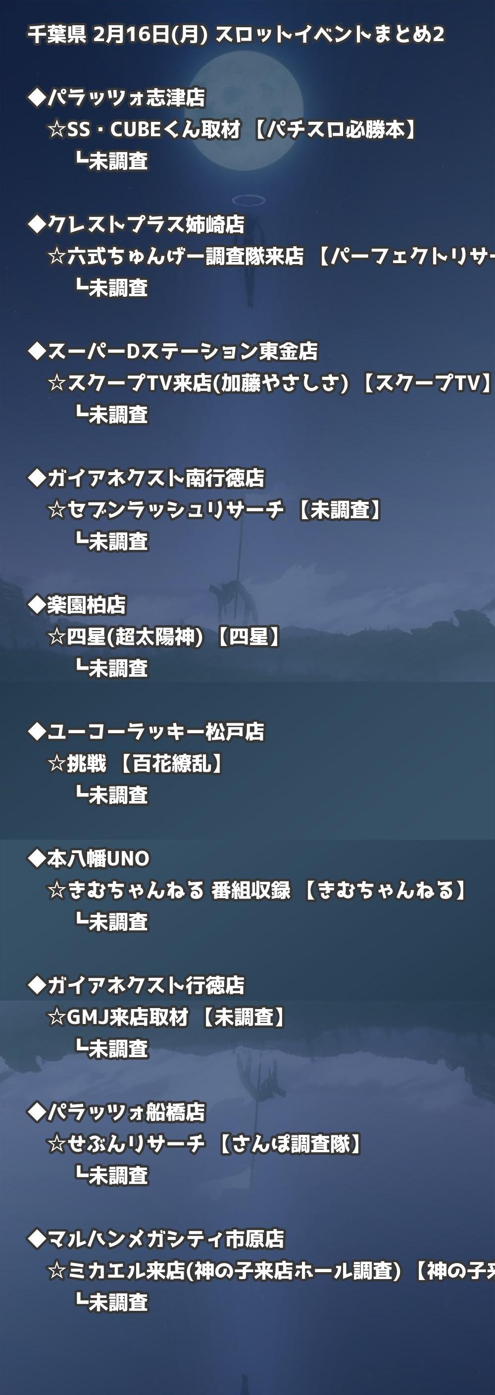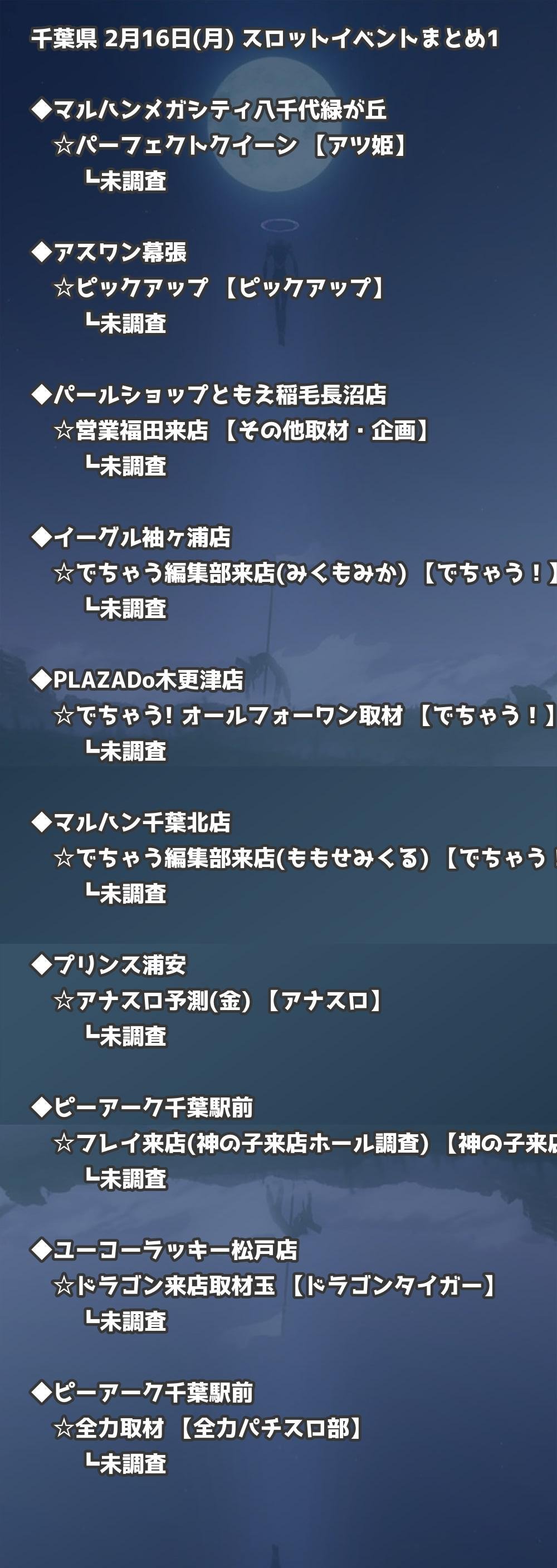 2月16日(月) 千葉県のTOP20の結果を掲載しています。タップで上位機種など詳細が見れます。