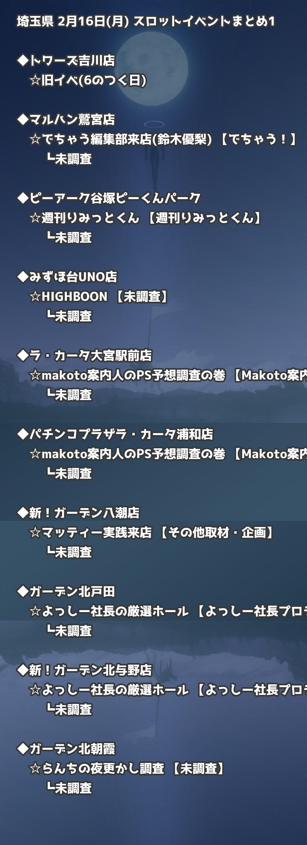 | ガーデン北戸田 | スロ王来店取材 | 未調査 |