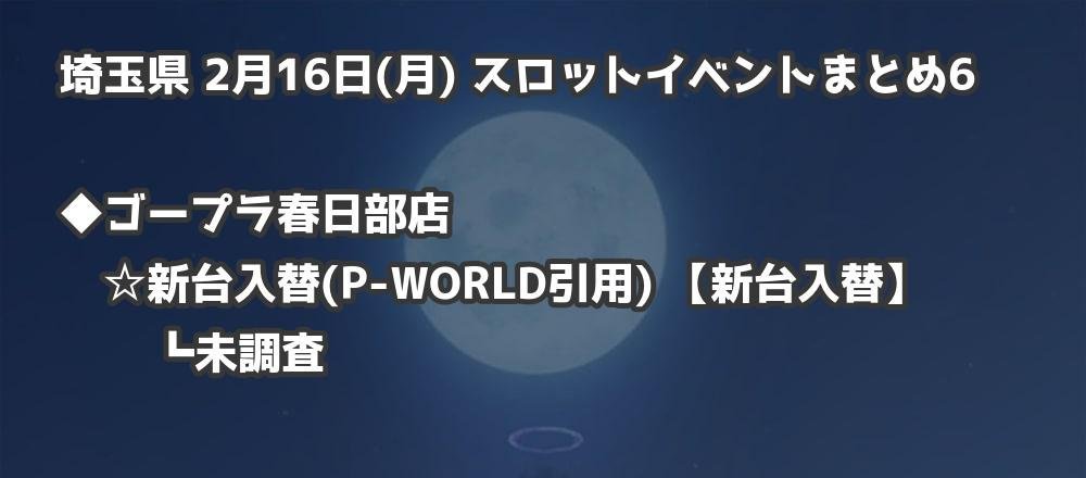 | ゴープラ春日部店 | 新台入替(P-WORLD引用) | 新台入替 |