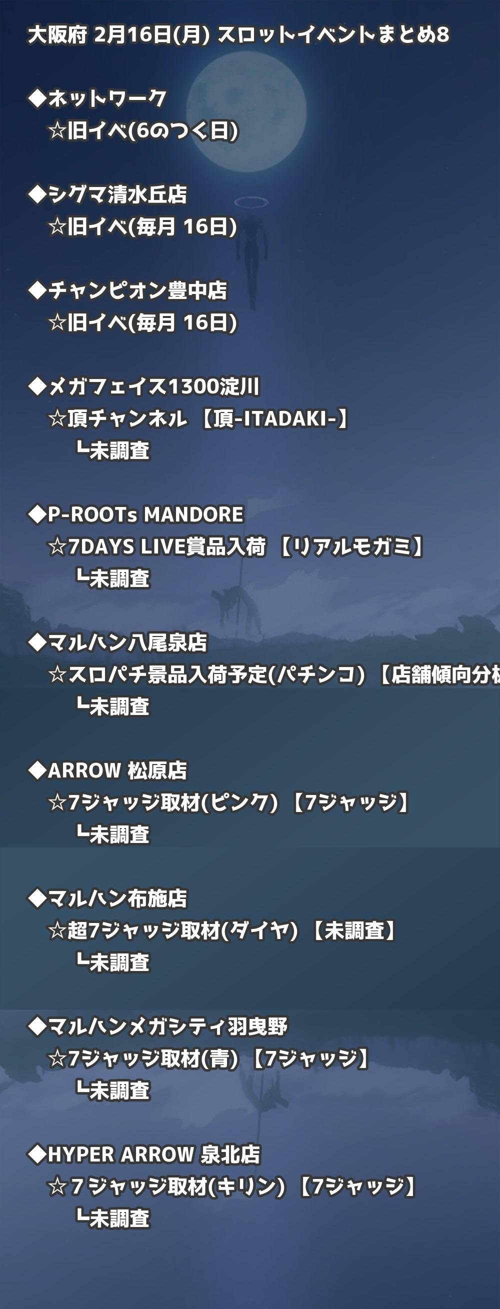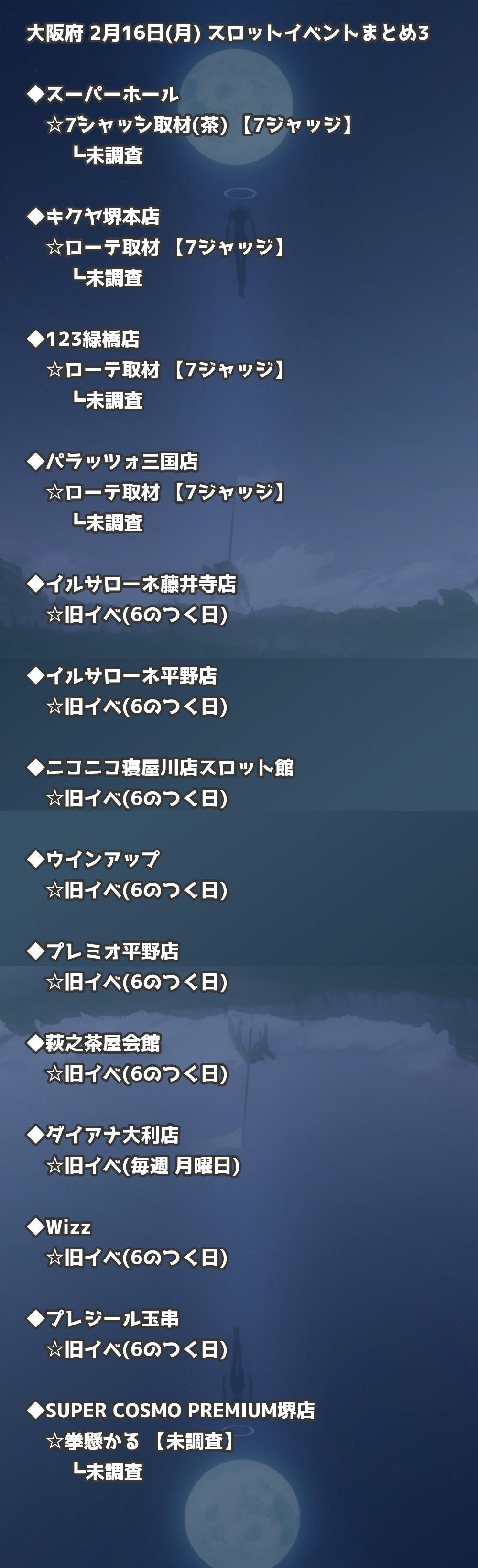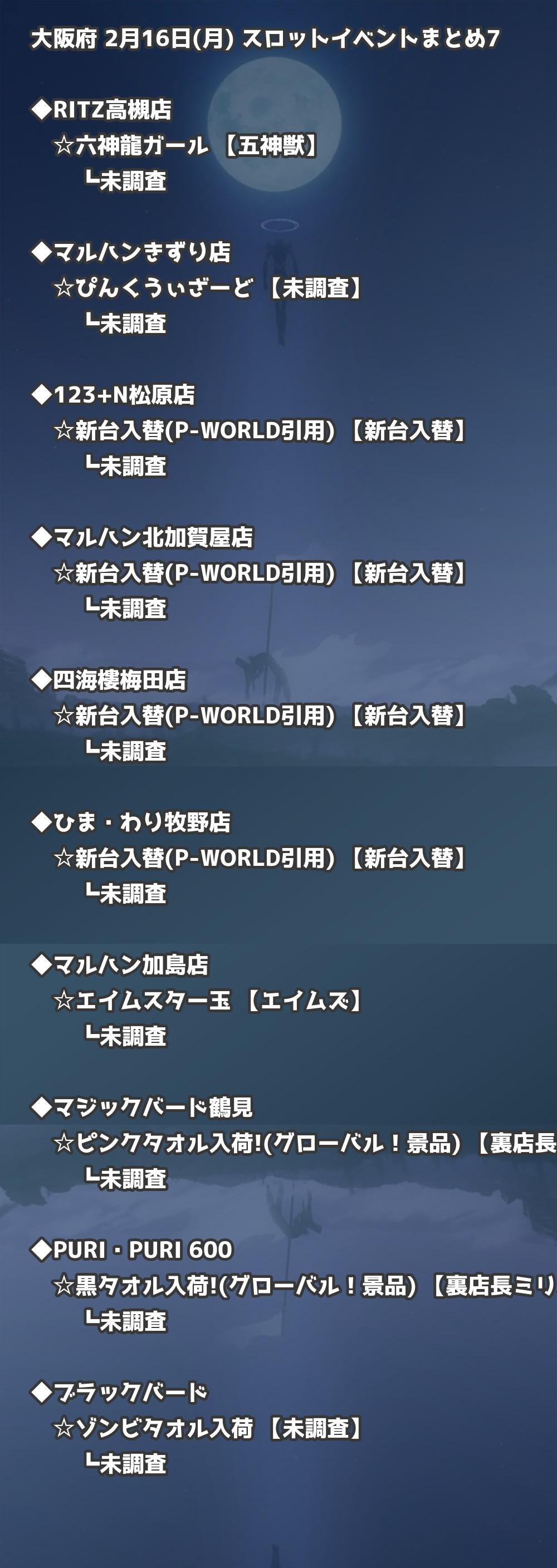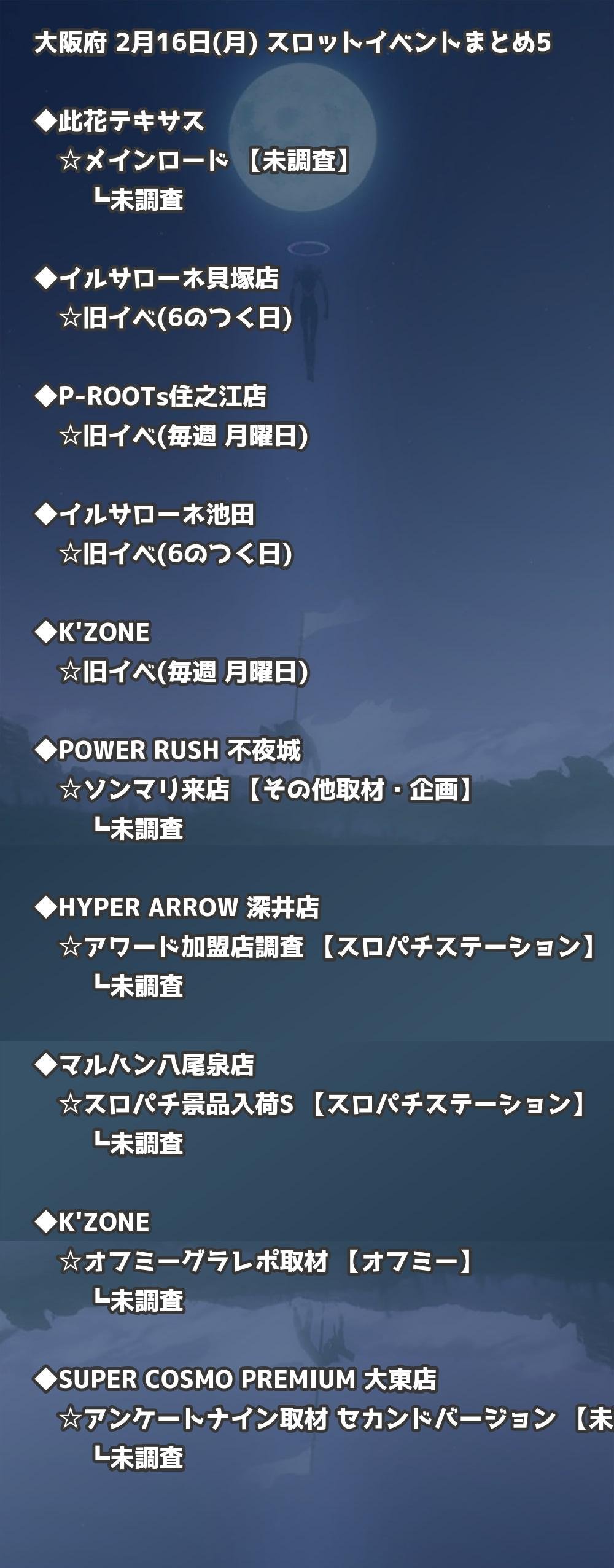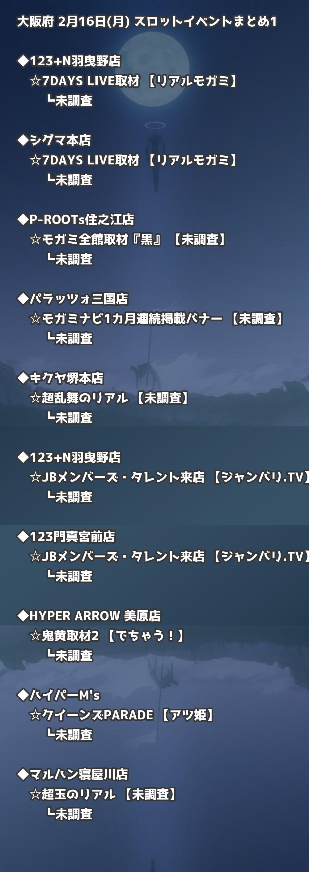 【大阪府】2月16日(月) パチンコホールイベント取材まとめ記事です。