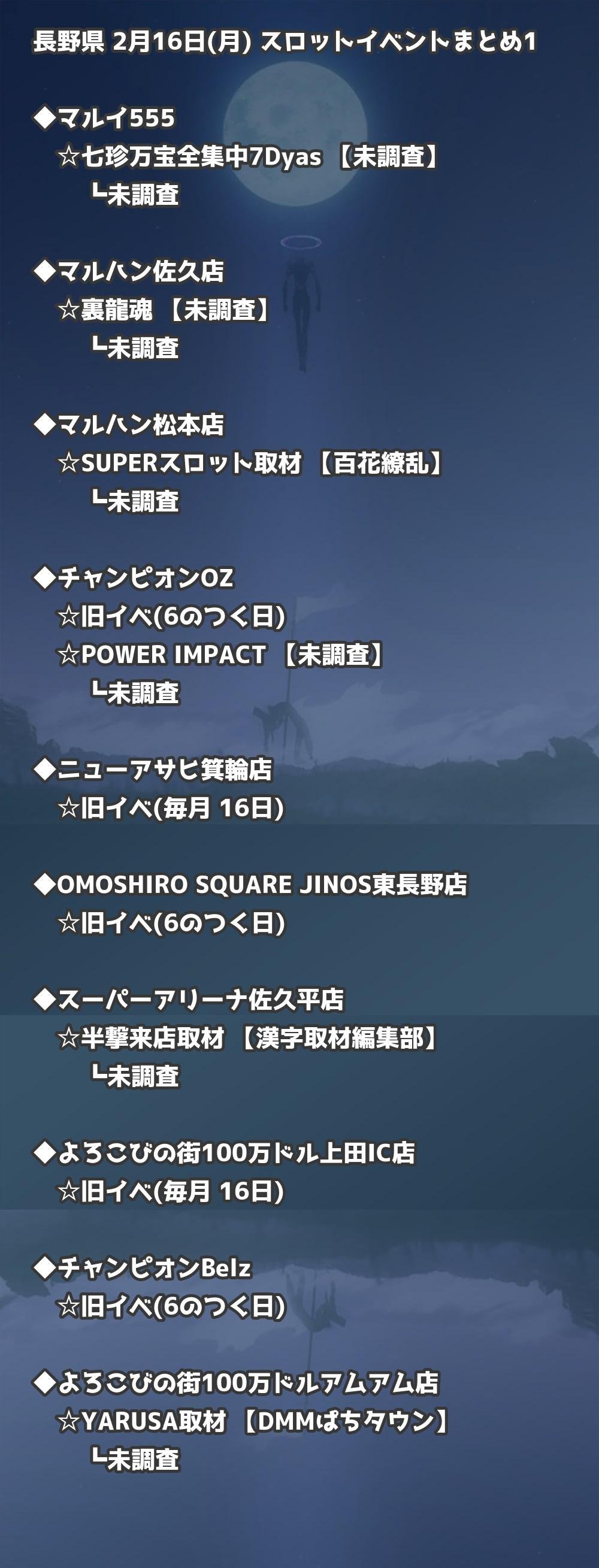 📊 長野県 2月16日(月) 勝てるパチンコ・スロット取材店舗一覧|おすすめ順