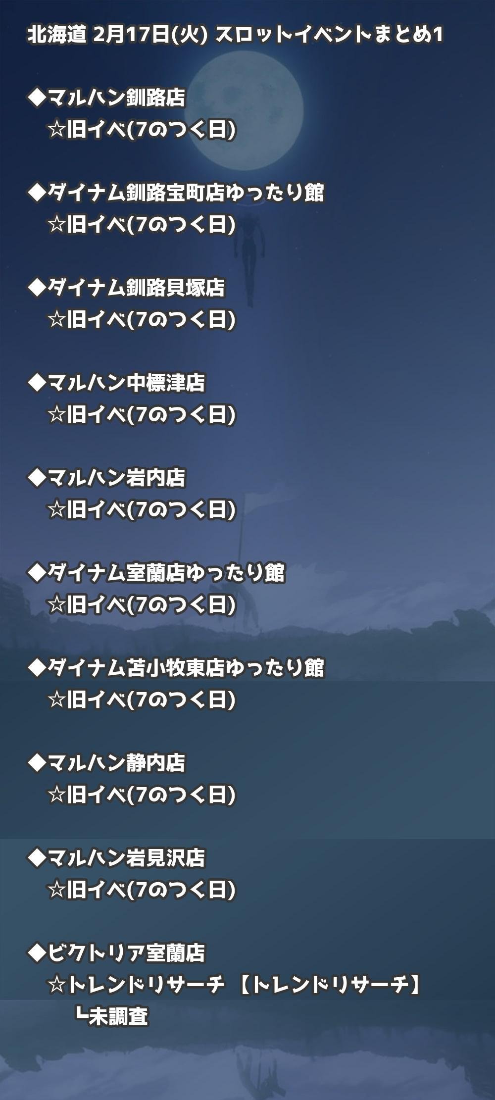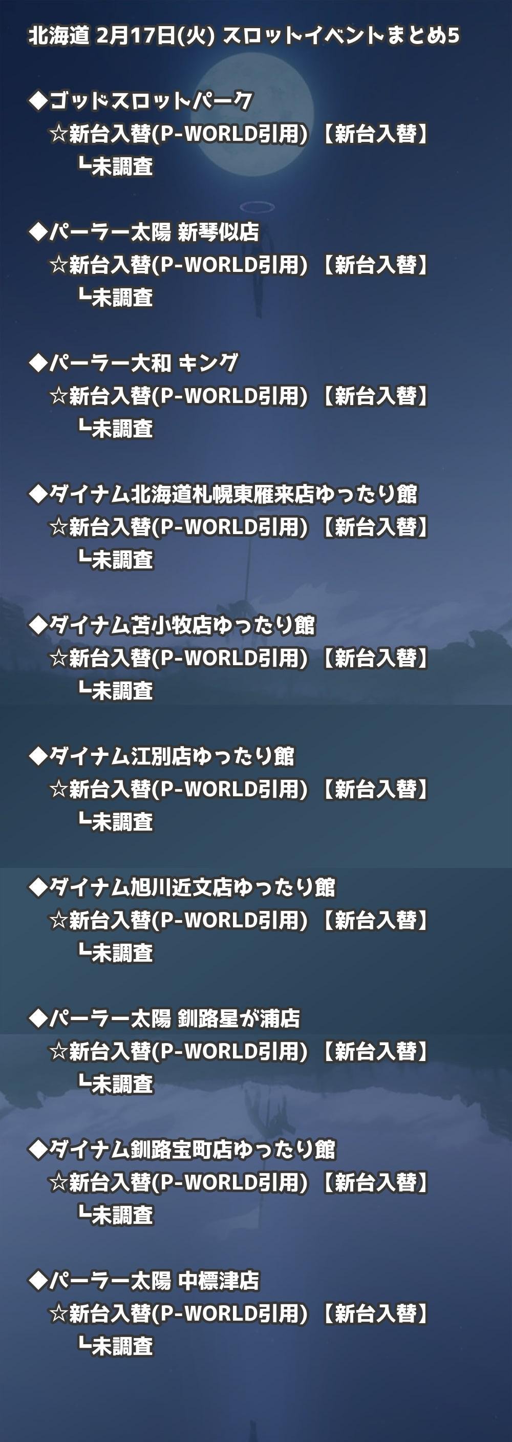 📊 北海道 2月17日(火) 勝てるパチンコ・スロット取材店舗一覧|おすすめ順