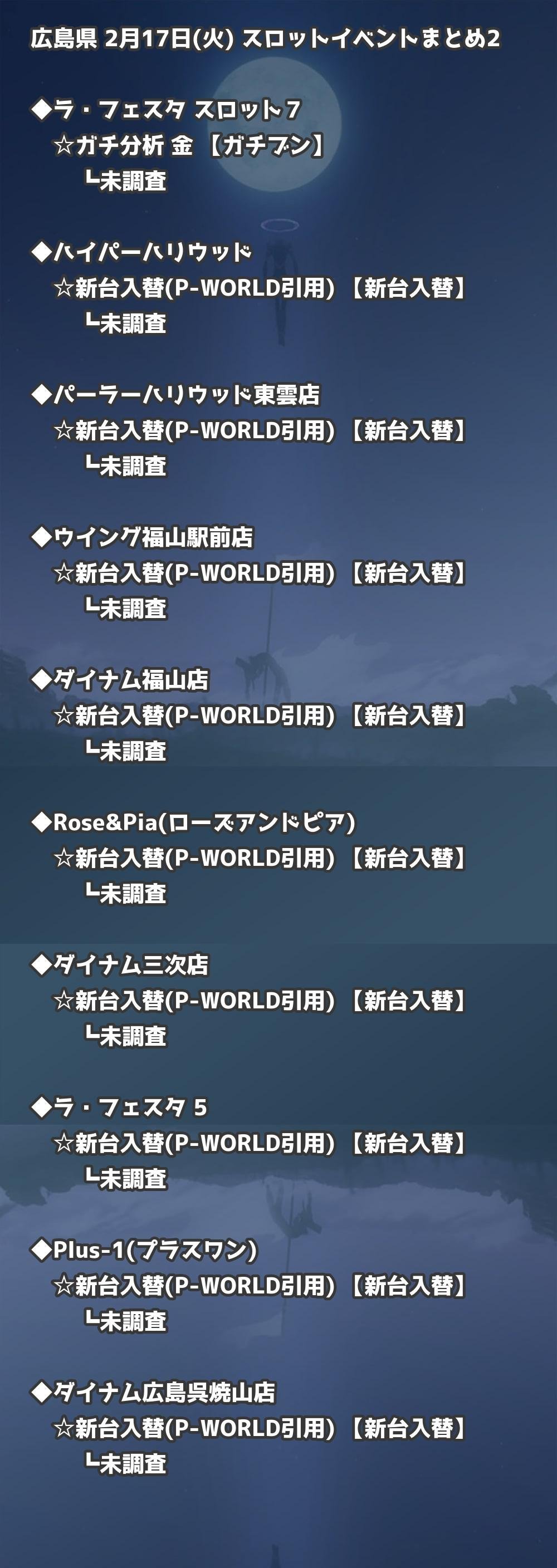 【広島県】2月17日(火) パチンコホールイベント取材まとめ記事です。