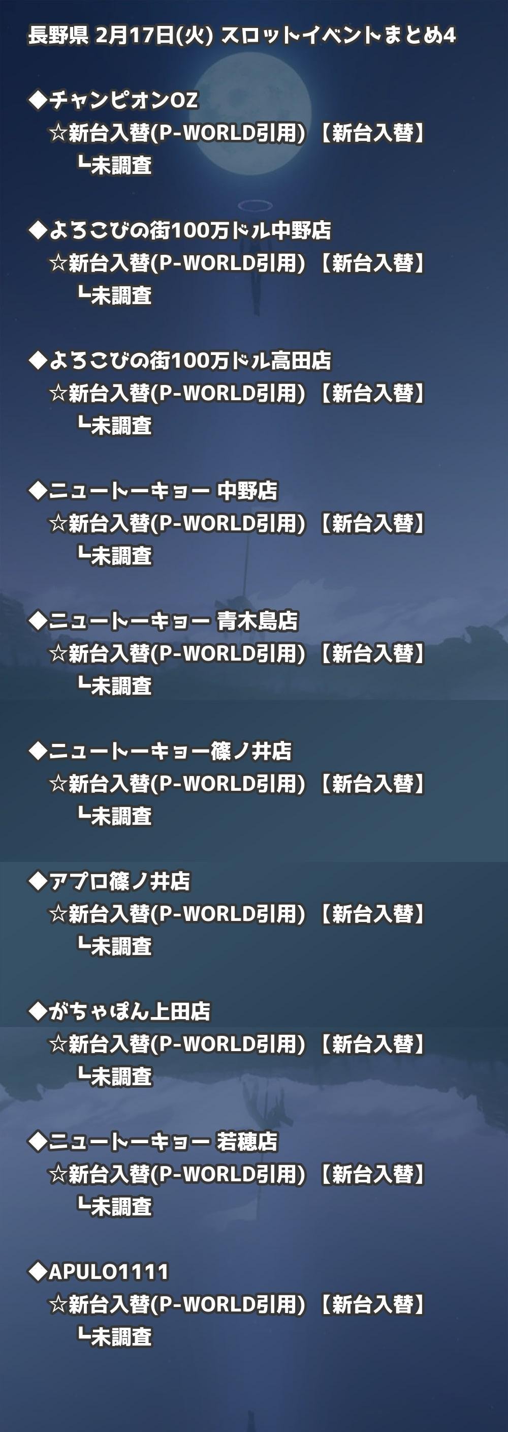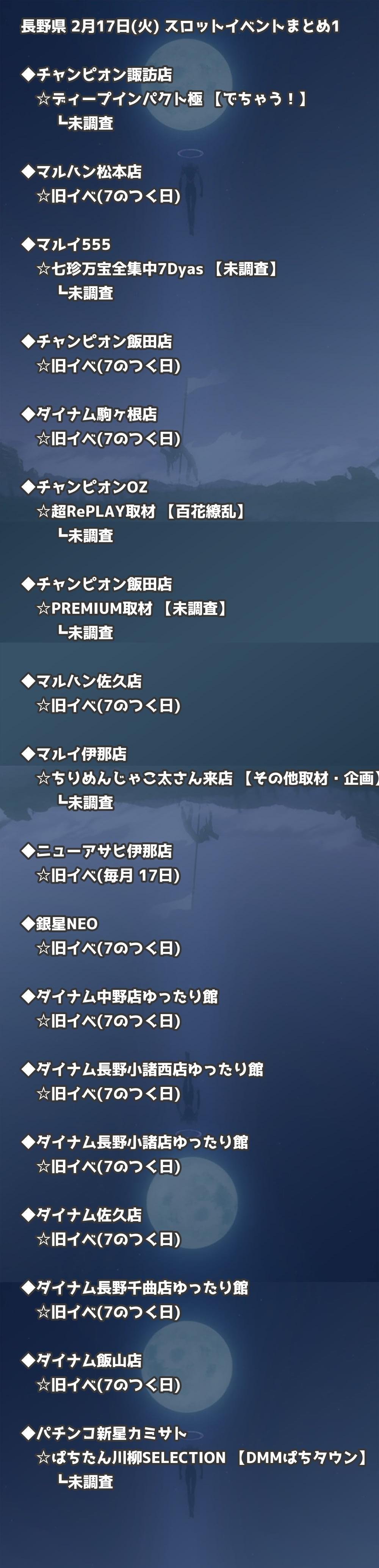 【長野県】2月17日(火) パチンコホールイベント取材まとめ記事です。