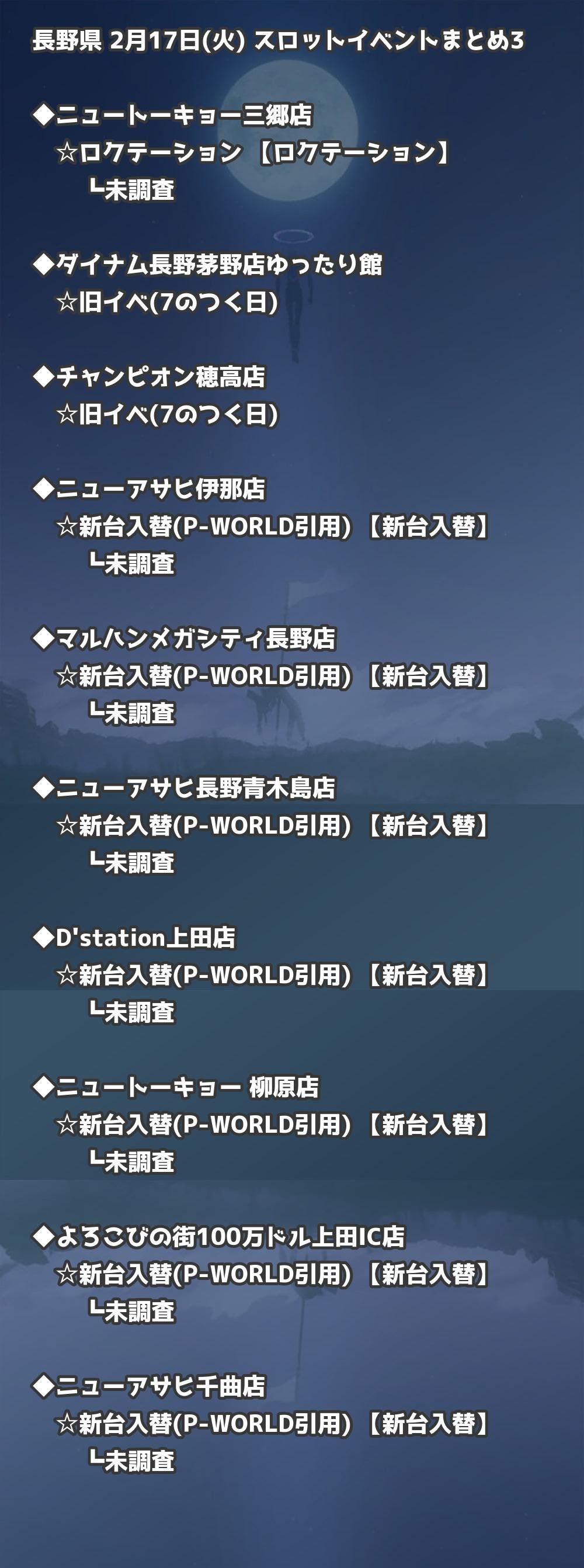 📊 長野県 2月17日(火) 勝てるパチンコ・スロット取材店舗一覧|おすすめ順