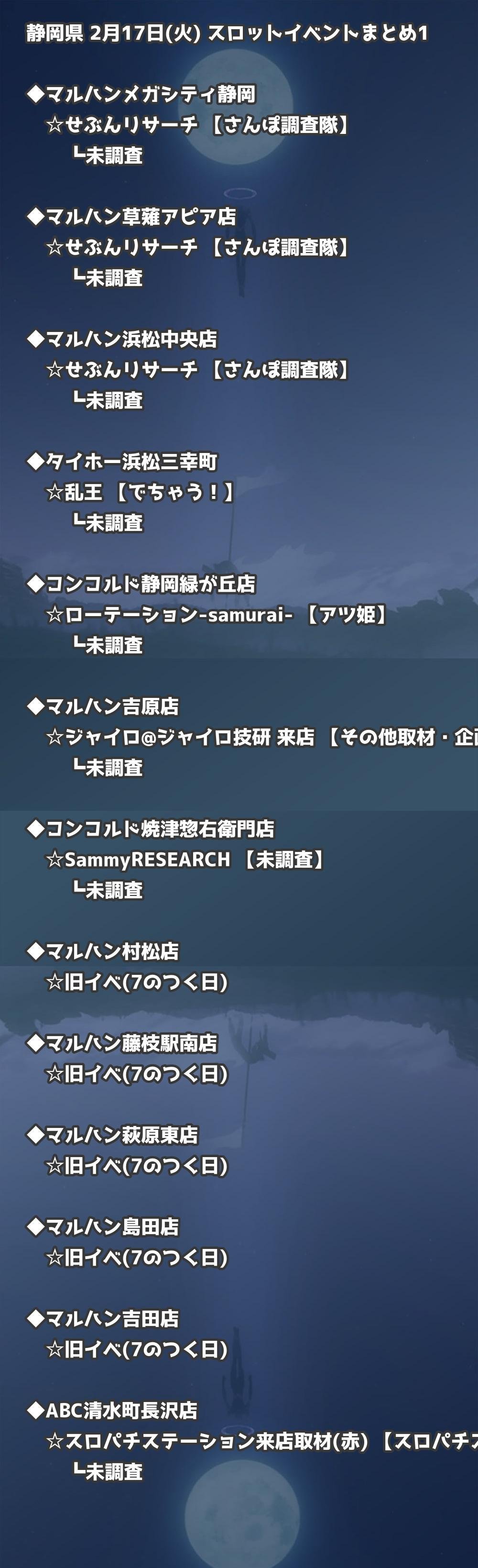 📊 静岡県 2月17日(火) 勝てるパチンコ・スロット取材店舗一覧|おすすめ順