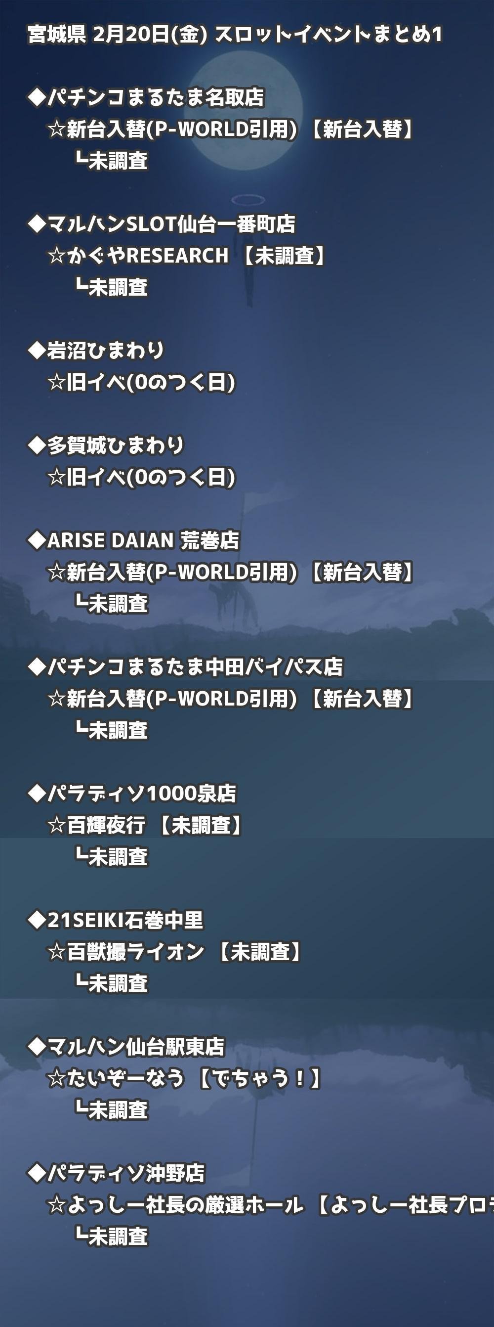 📊 宮城県 2月20日(金) 勝てるパチンコ・スロット取材店舗一覧|おすすめ順