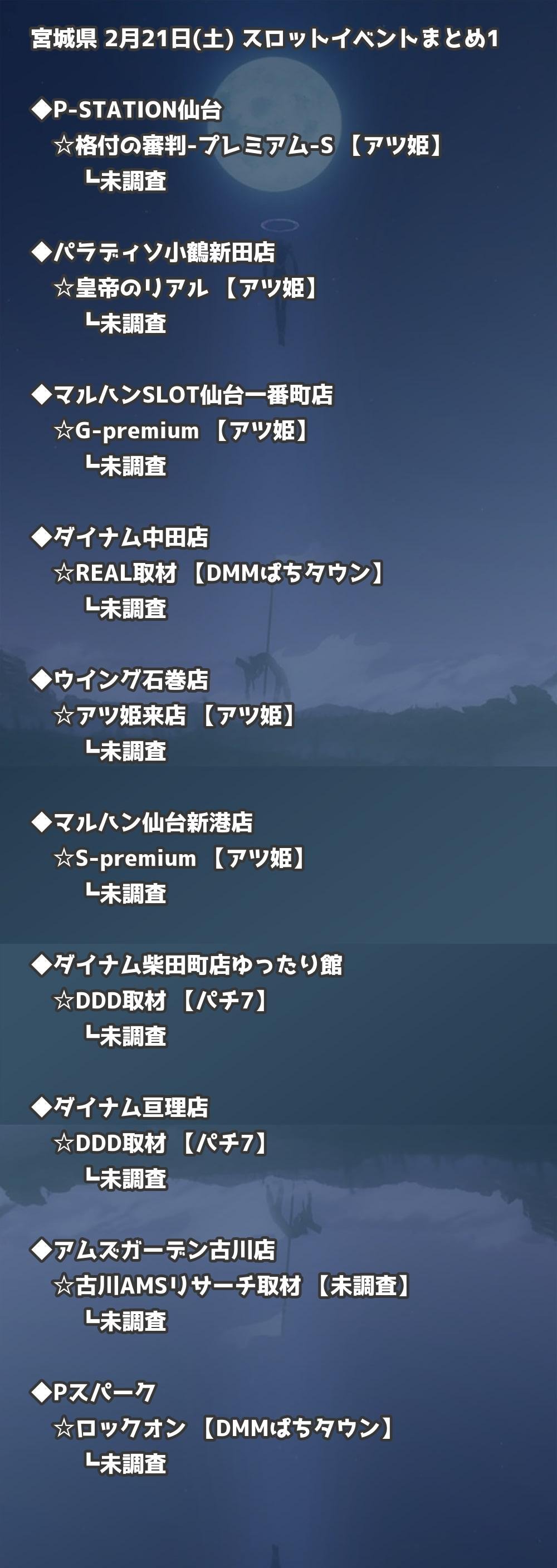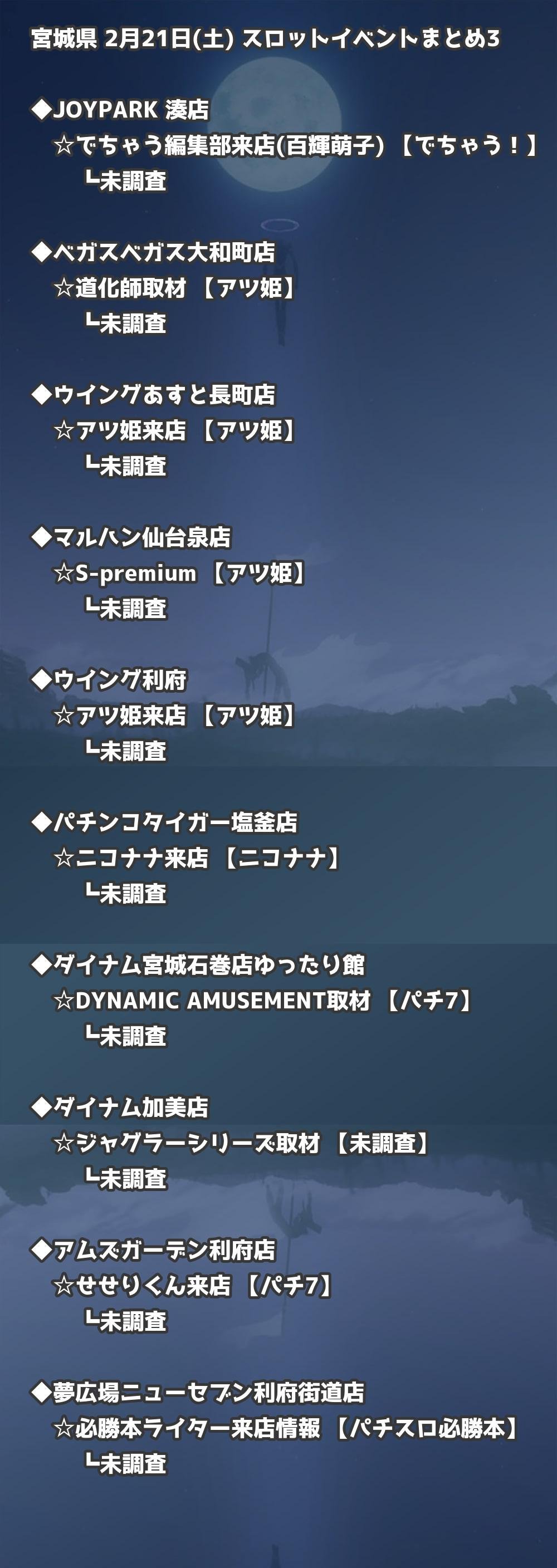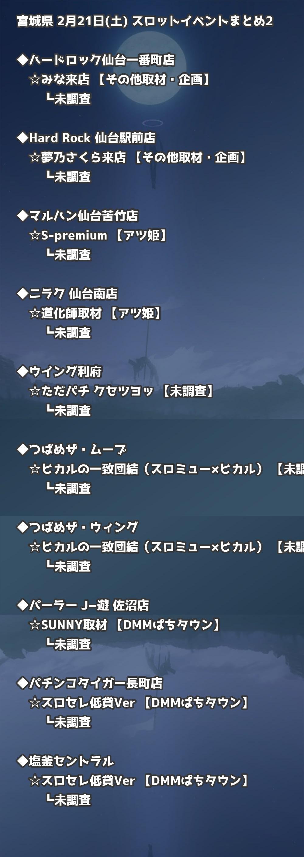 【宮城県】2月21日(土) パチンコホールイベント取材まとめ記事です。