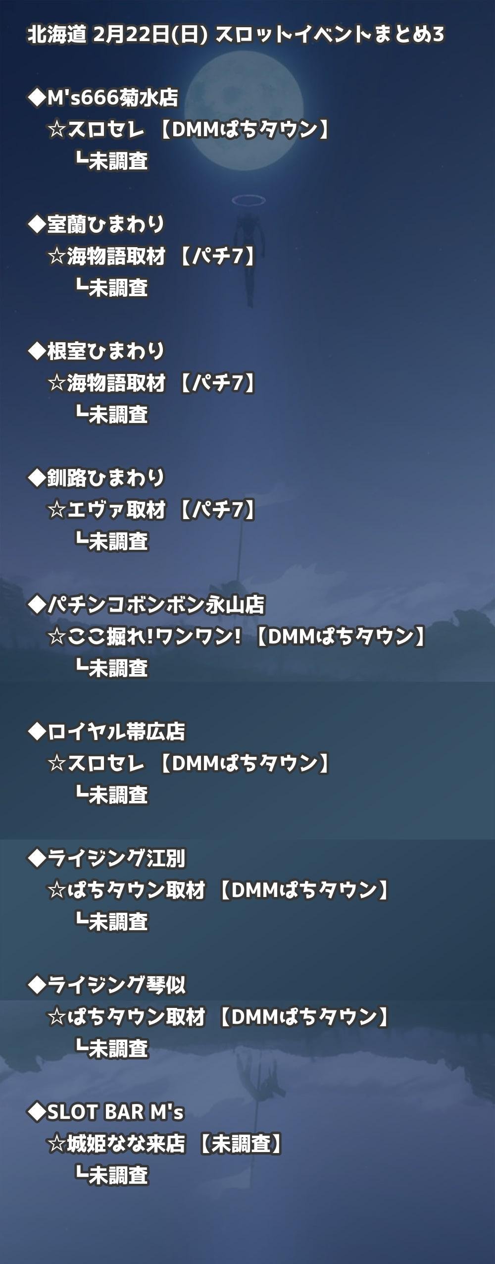 【北海道】2月22日(日) パチンコホールイベント取材まとめ記事です。