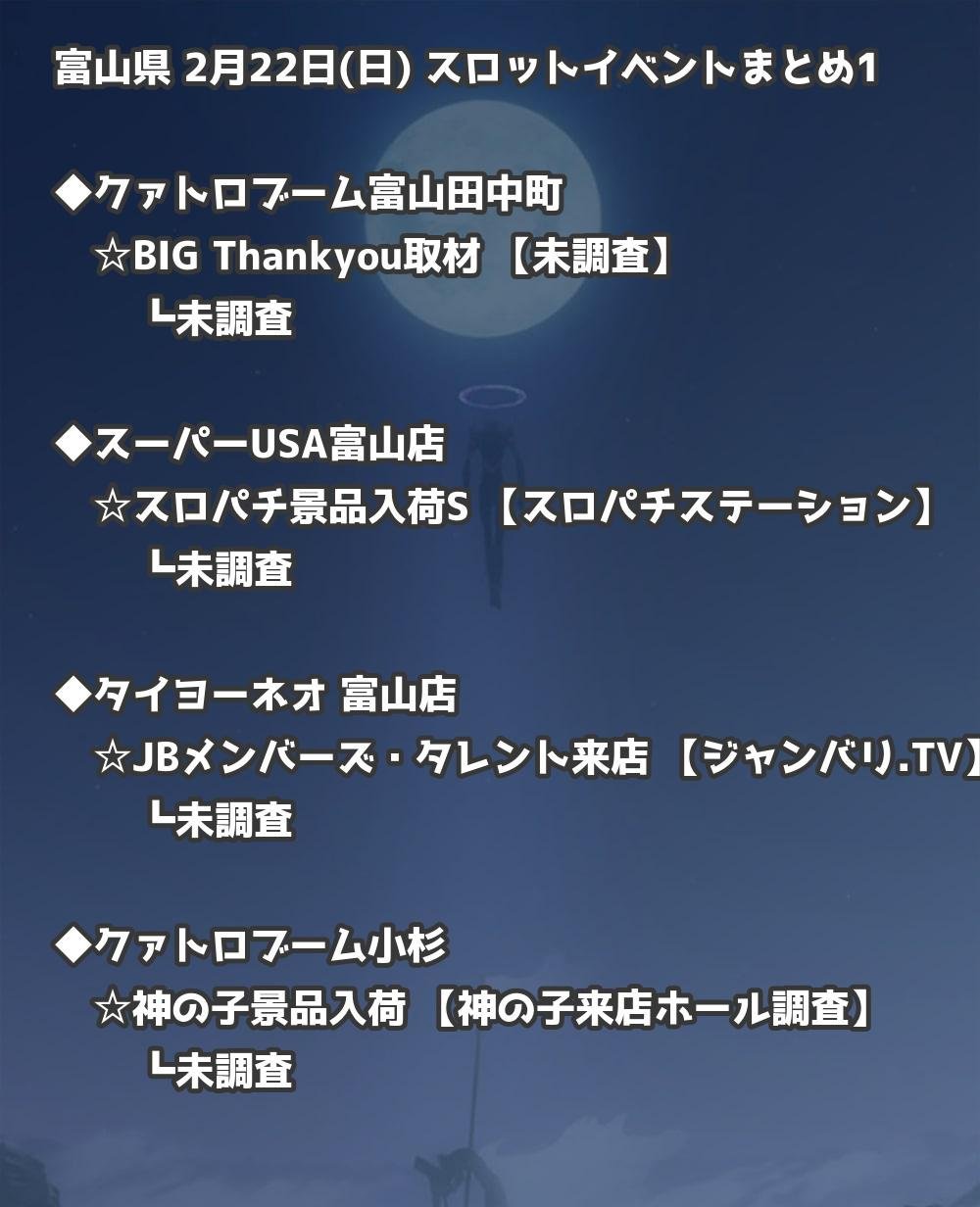 【富山県】2月22日(日) パチンコホールイベント取材まとめ記事です。
