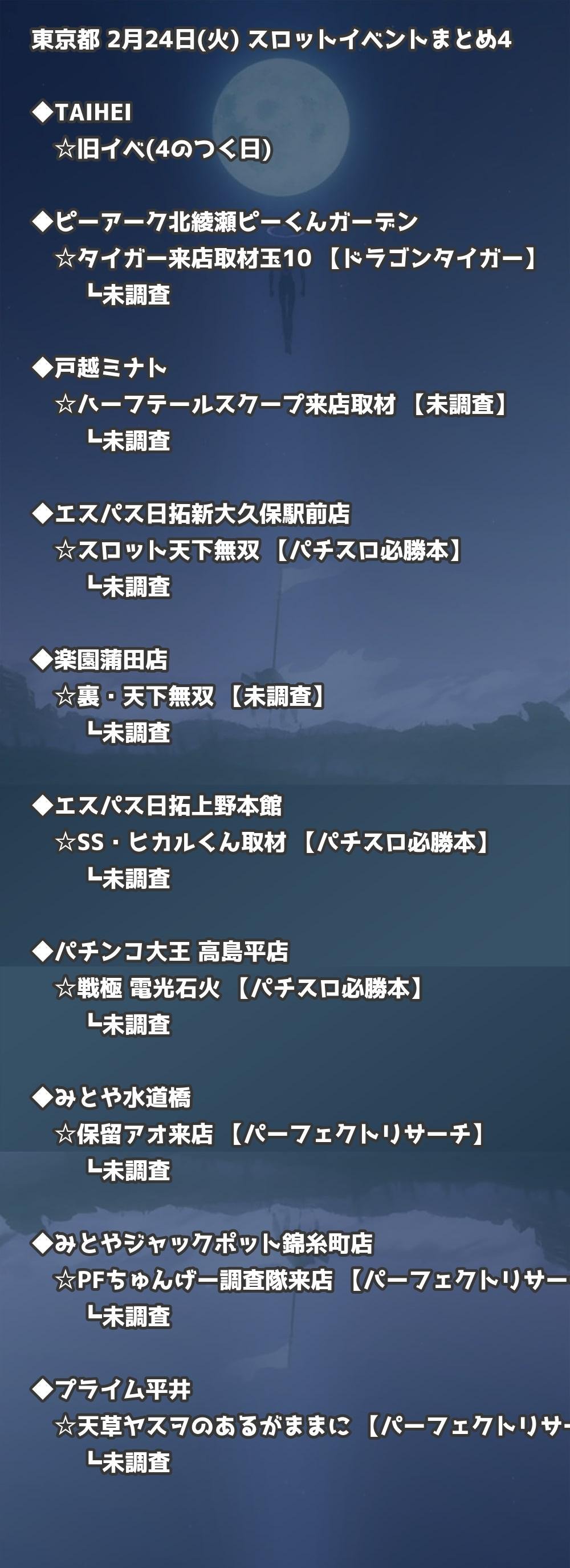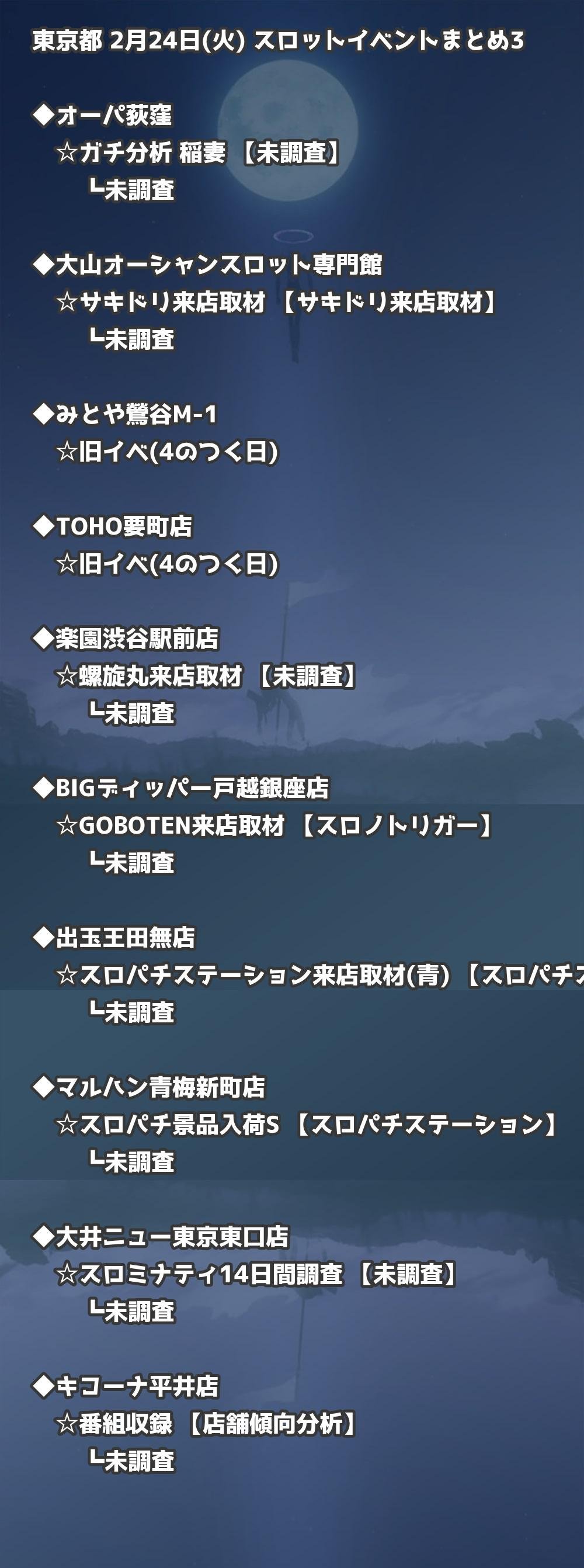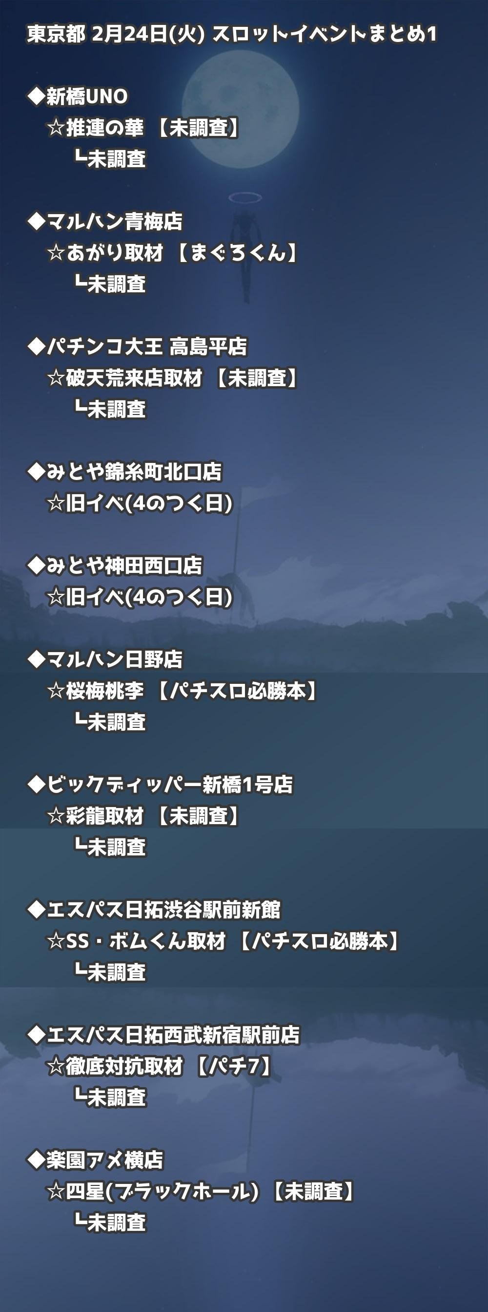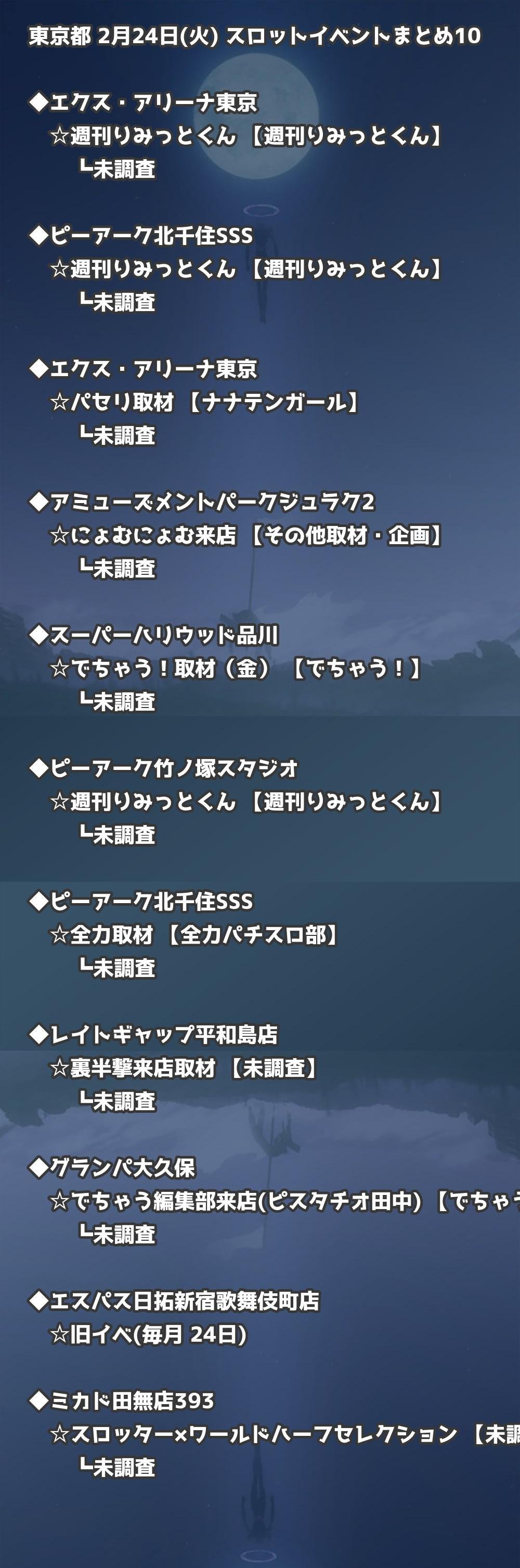 📊 東京都 2月24日(火) 勝てるパチンコ・スロット取材店舗一覧|おすすめ順