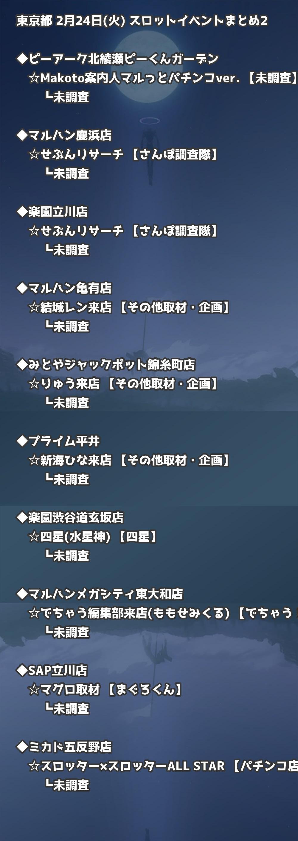【東京都】2月24日(火) パチンコホールイベント取材まとめ記事です。