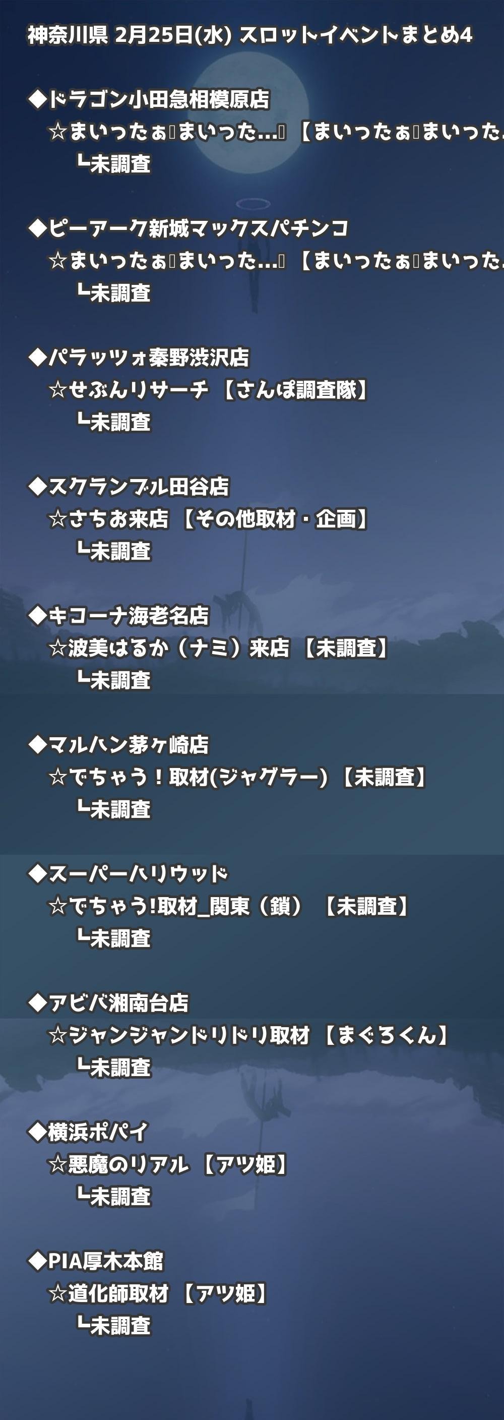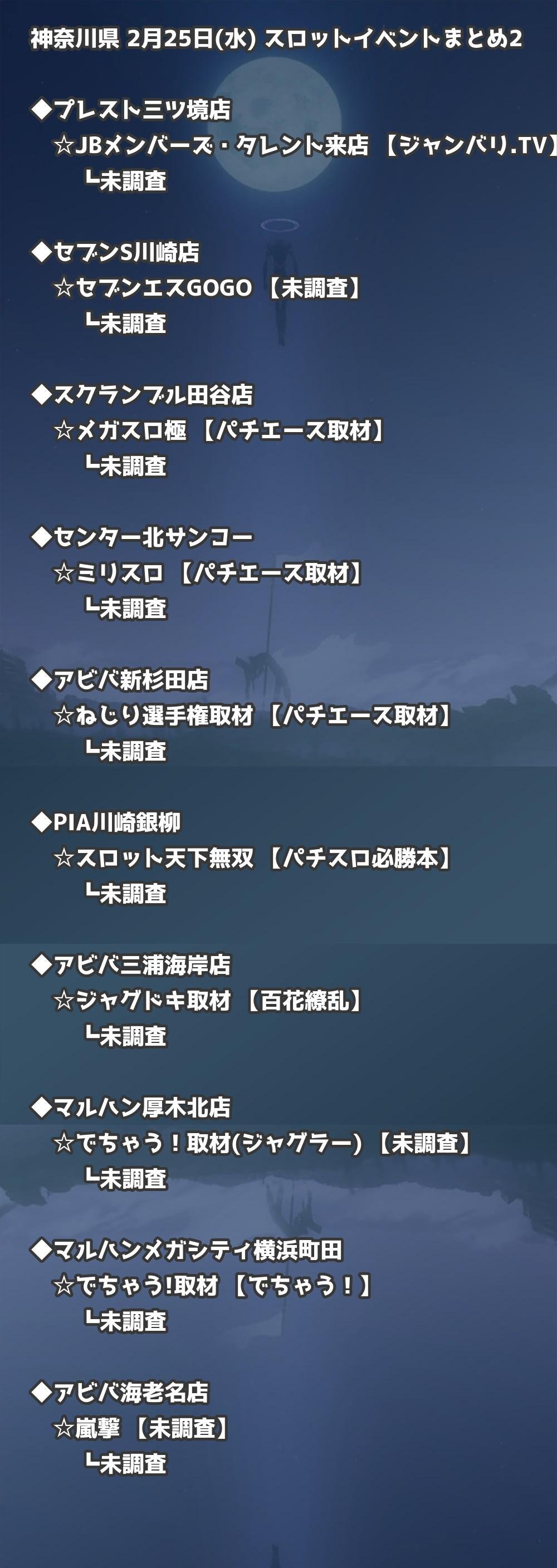 📊 神奈川県 2月25日(水) 勝てるパチンコ・スロット取材店舗一覧|おすすめ順