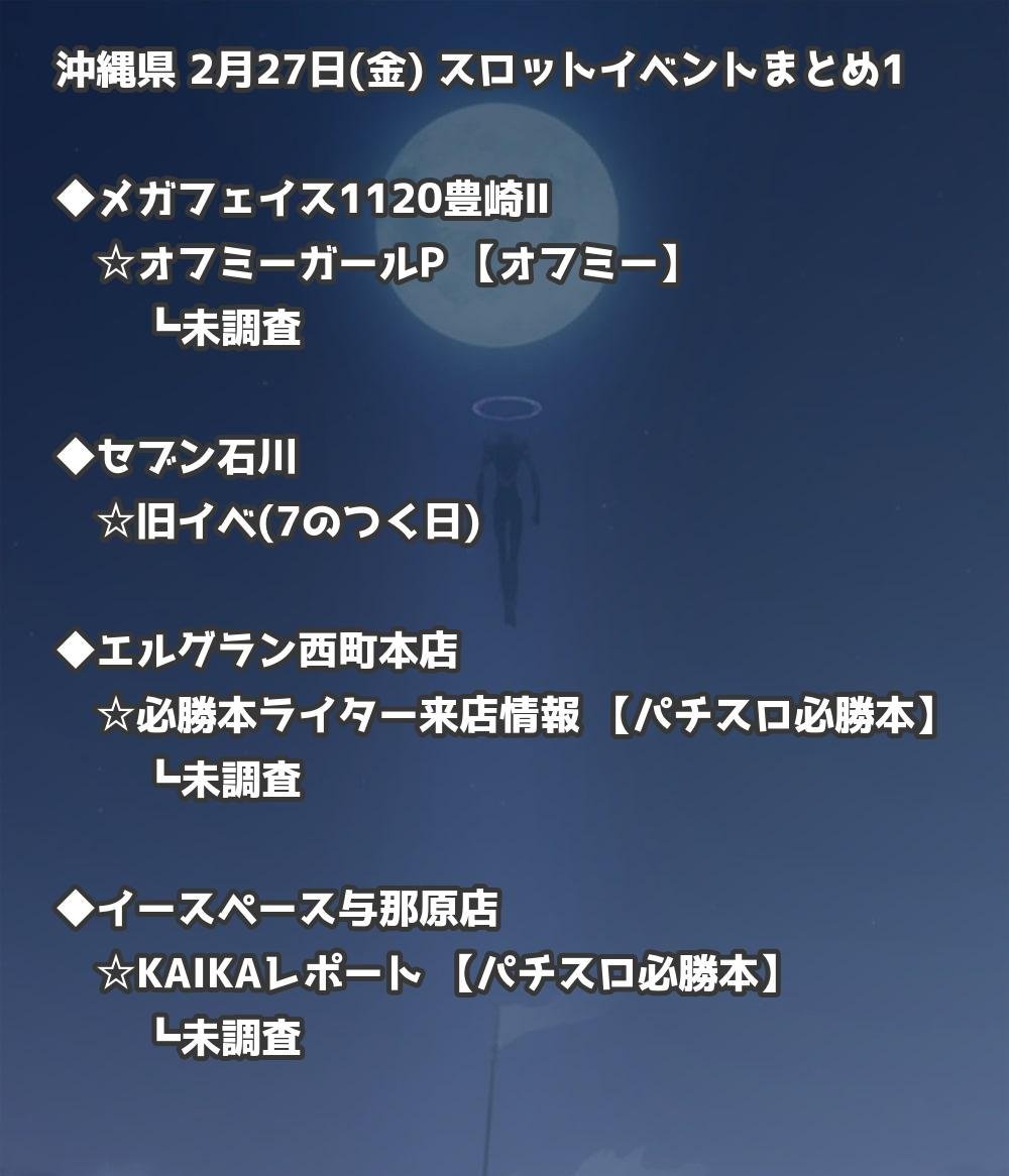【沖縄県】2月27日(金) パチンコホールイベント取材まとめ記事です。