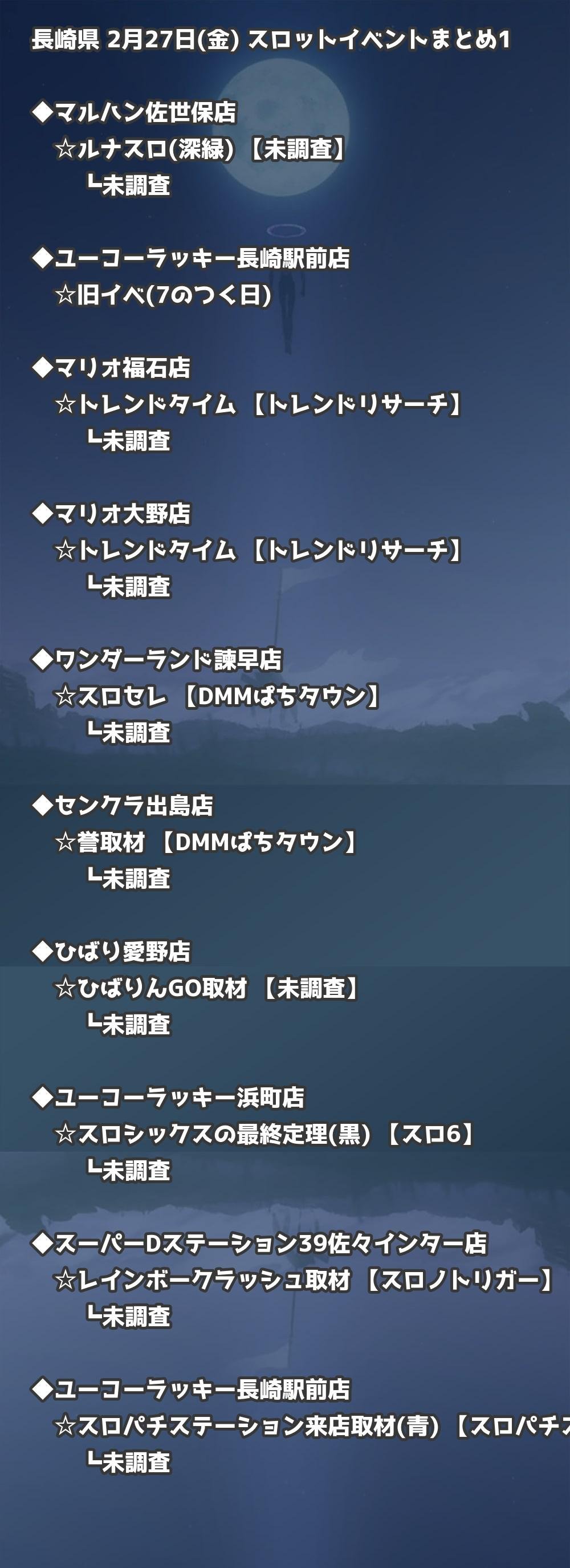 📊 長崎県 2月27日(金) 勝てるパチンコ・スロット取材店舗一覧|おすすめ順