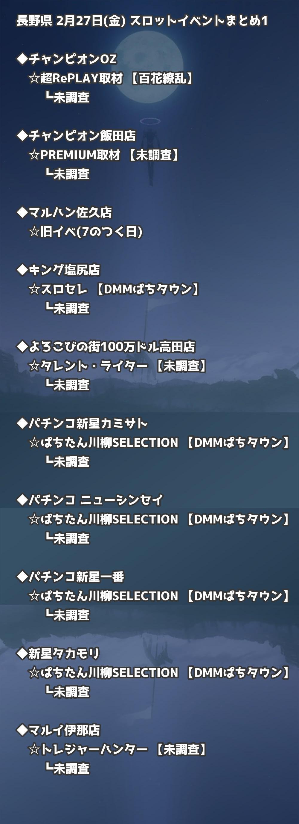 【長野県】2月27日(金) パチンコホールイベント取材まとめ記事です。