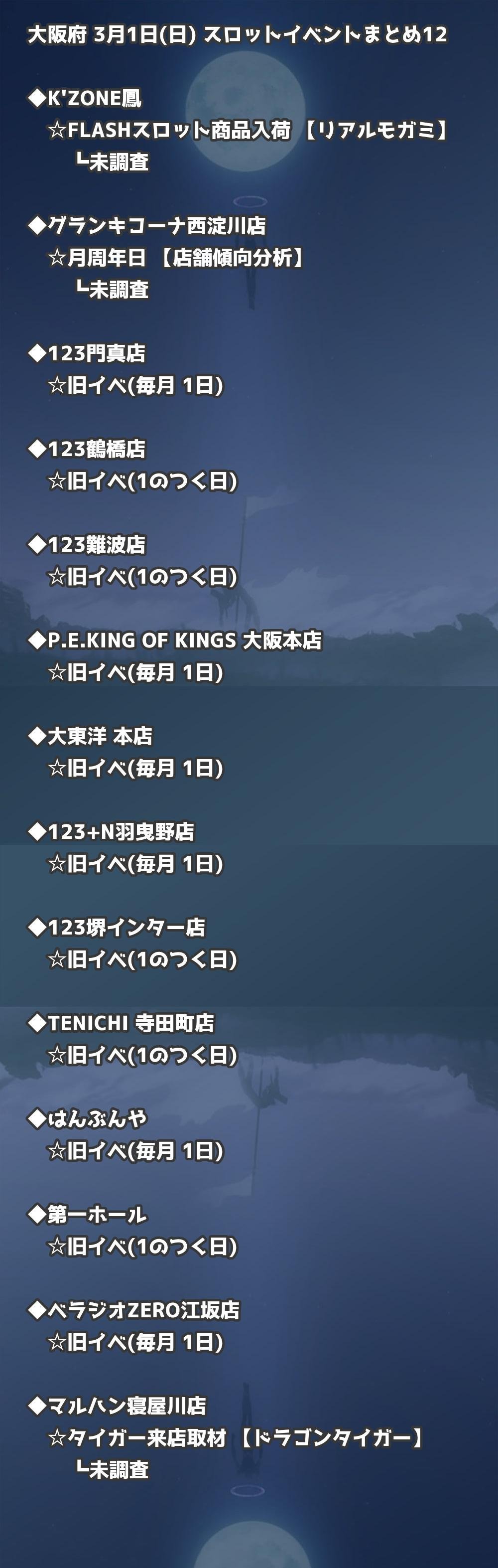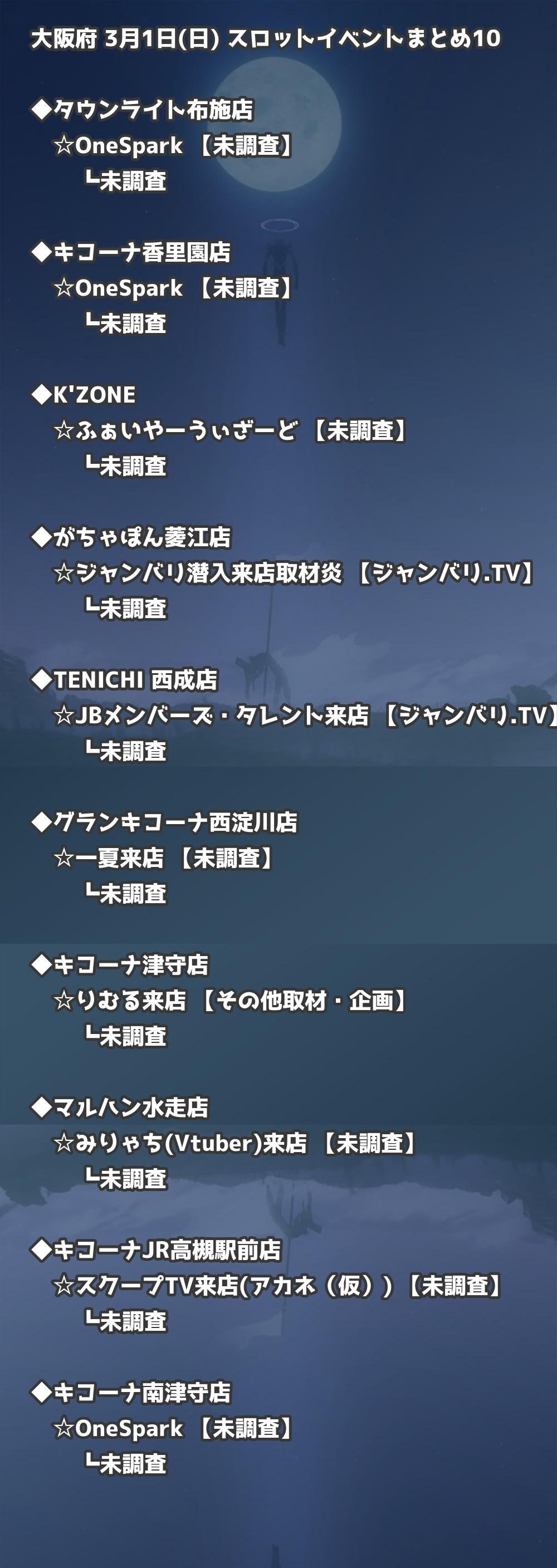 【大阪府】3月1日(日) パチンコホールイベント取材まとめ記事です。
