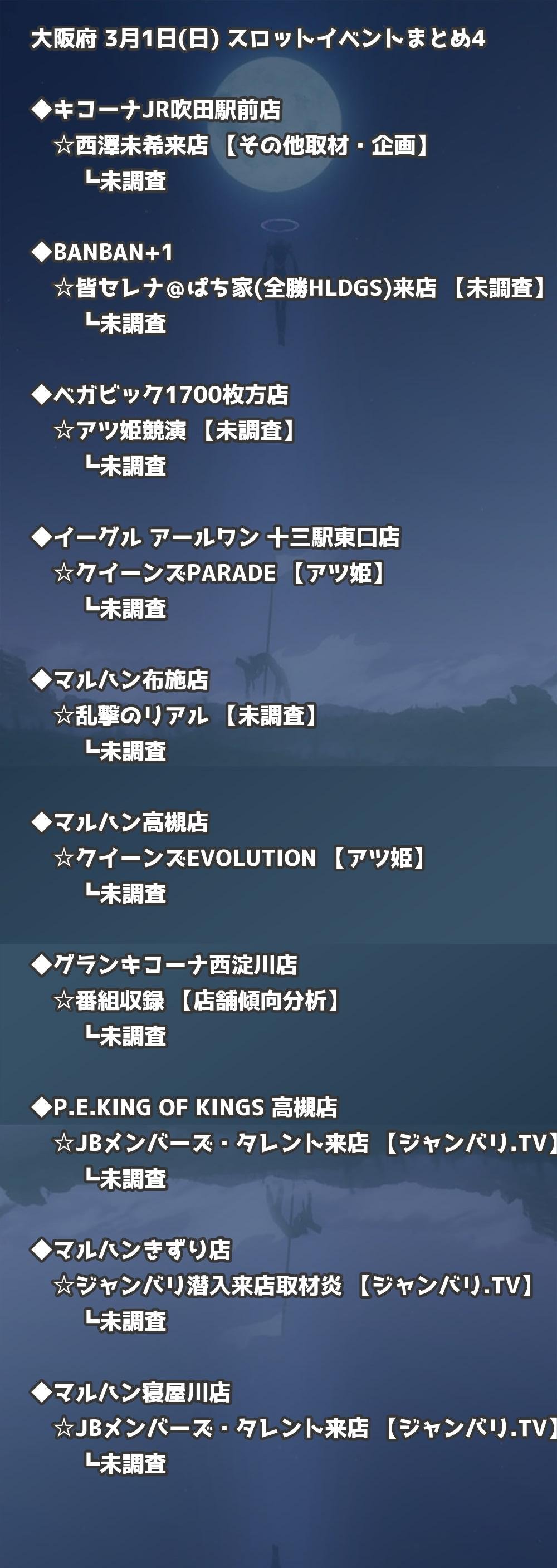 ※店舗結果掲載済 【大阪】3月1日(日) 今日のスロット・パチンコ激熱イベント取材まとめ