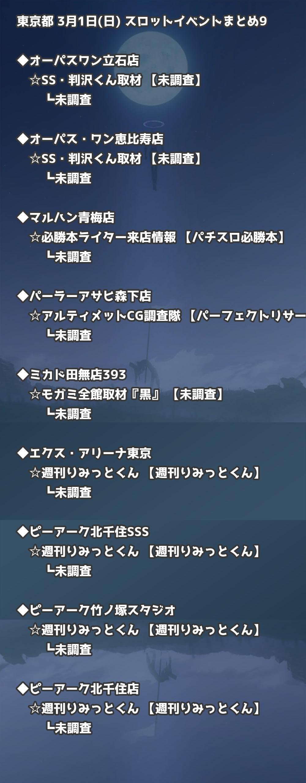 【東京都】3月1日(日) パチンコホールイベント取材まとめ記事です。